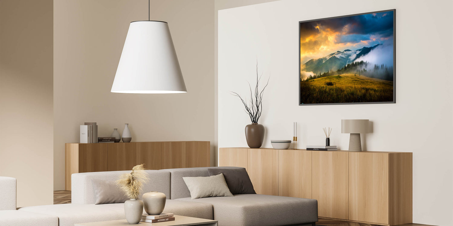 - Choose from stretched canvas, framed canvas, or framed acrylic glass for a luxurious presentation.