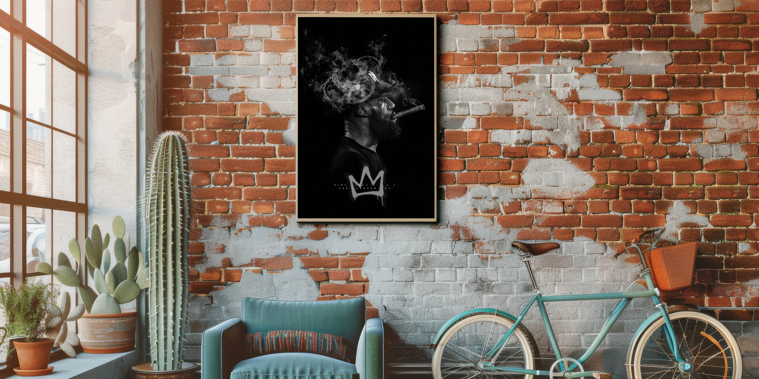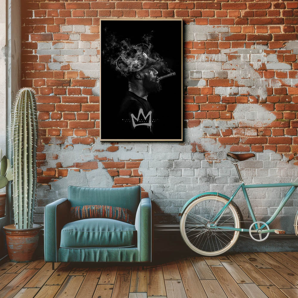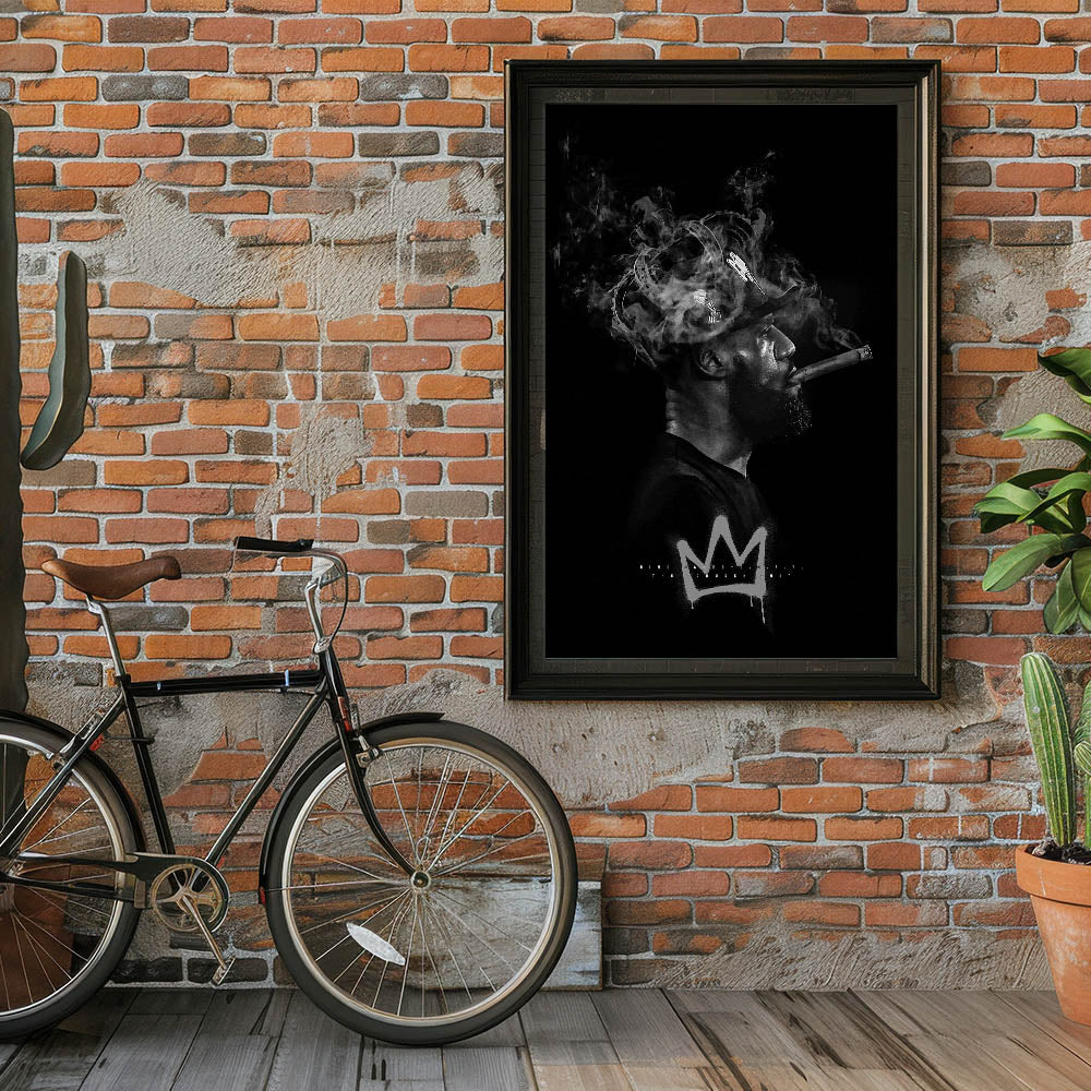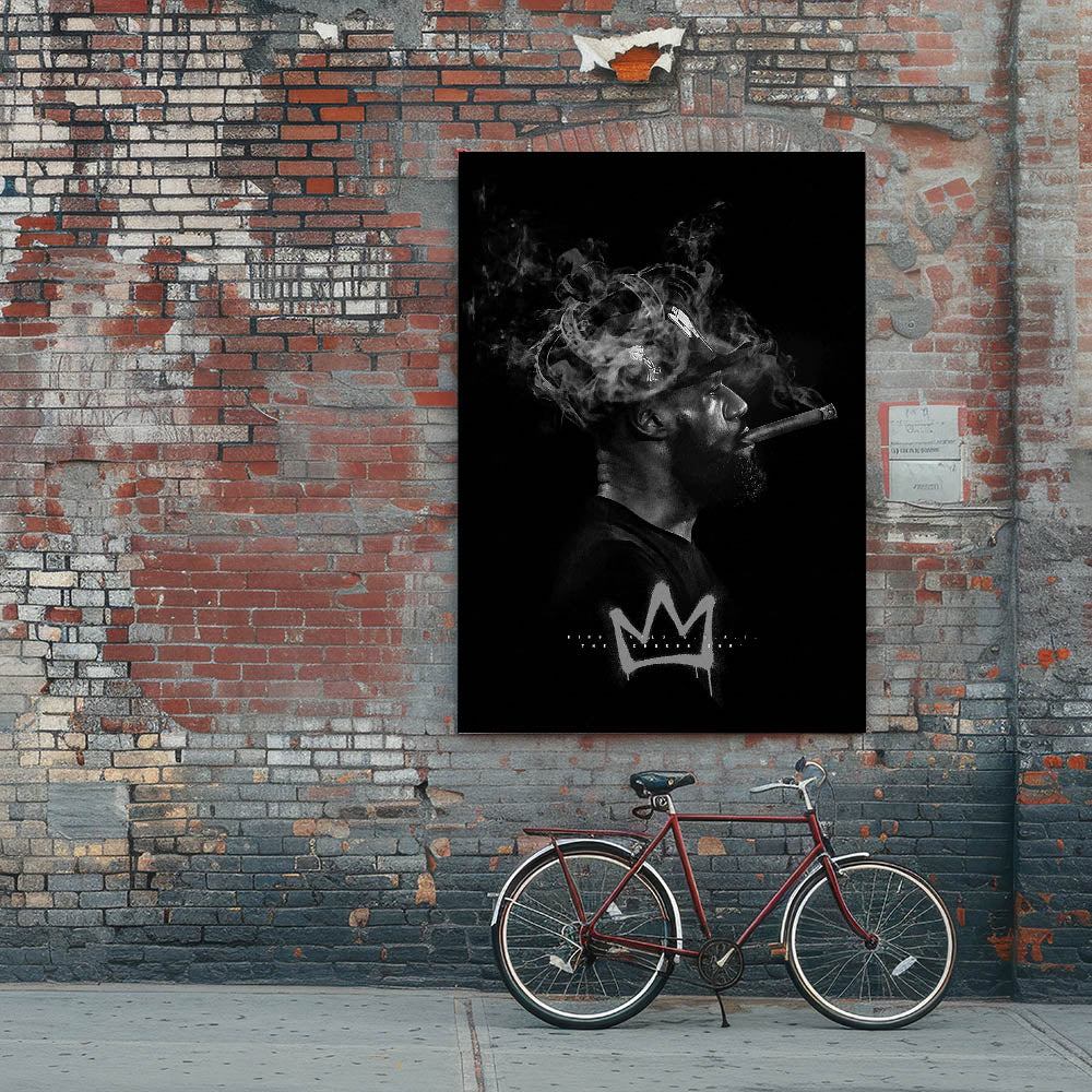 Celebrate the greatness of LeBron James with this bold pop art wall decor featuring the King himself. Showcasing a striking mix of black, yellow, and white, this artwork captures the essence of retro-inspired pop art with a modern, powerful twist. The crown motif, cigar, and motivational quote make it a must-have for basketball fans and art lovers alike.