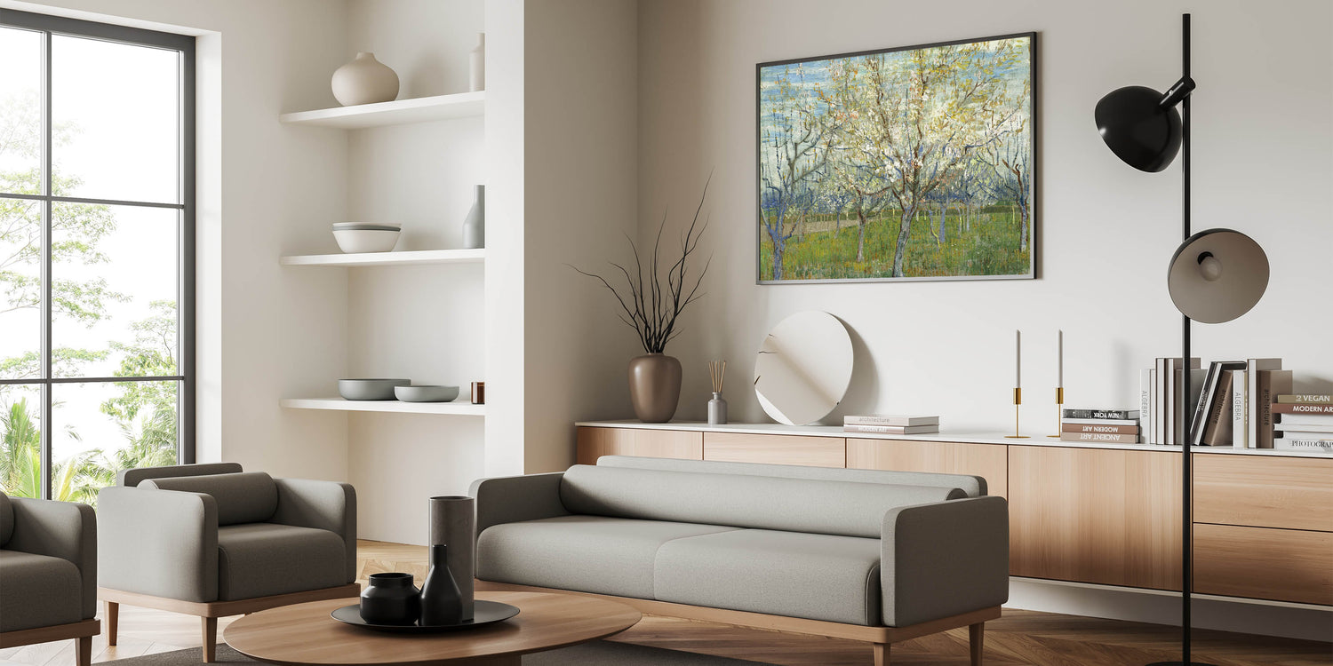 Bring a touch of nature's poetry into your decor with "Orchard in Blossom" by Vincent van Gogh. This exquisite piece not only highlights the artist's Impressionist mastery but also enhances any interior with its calming and elegant charm. Add this timeless artwork to your collection today.