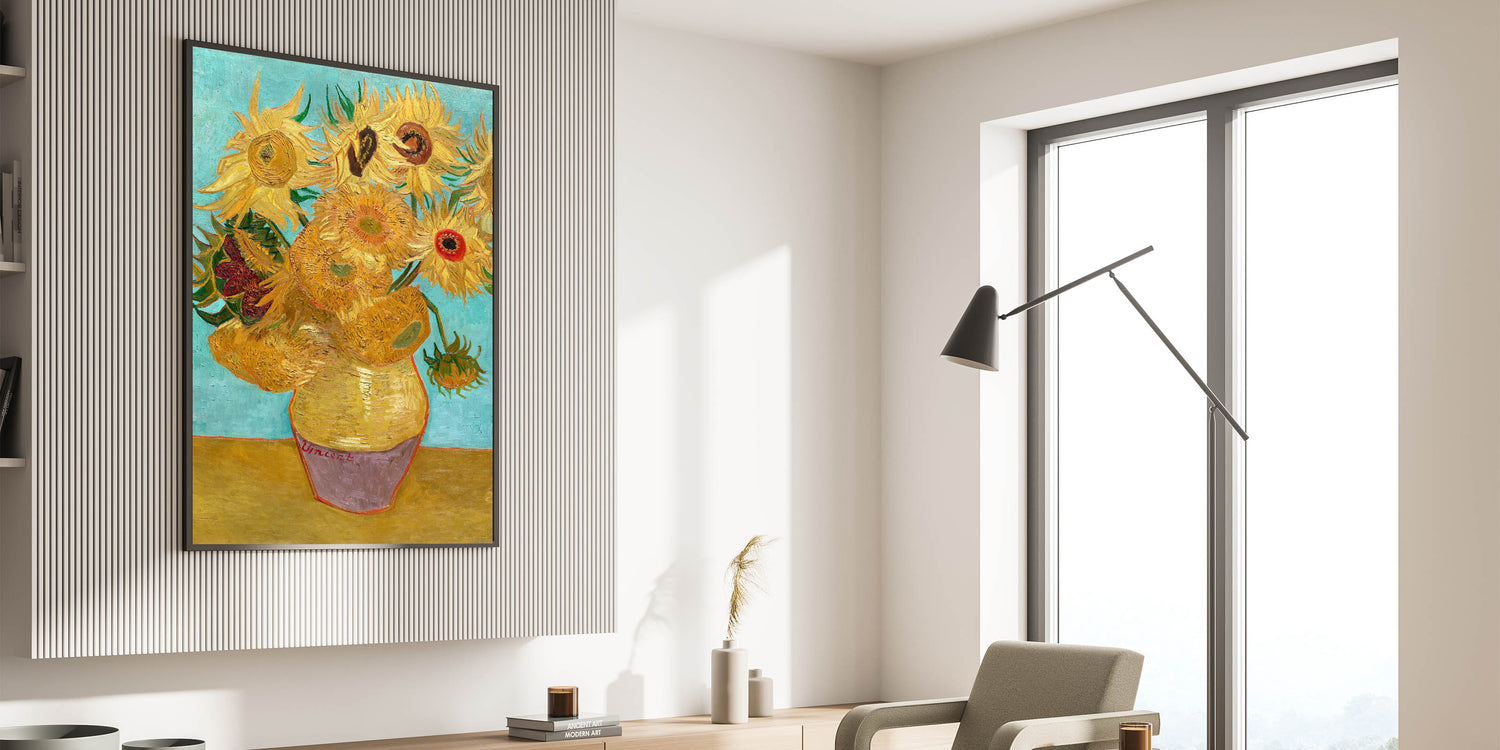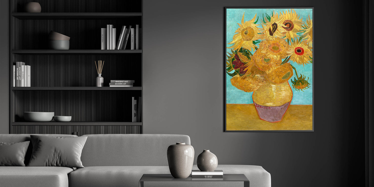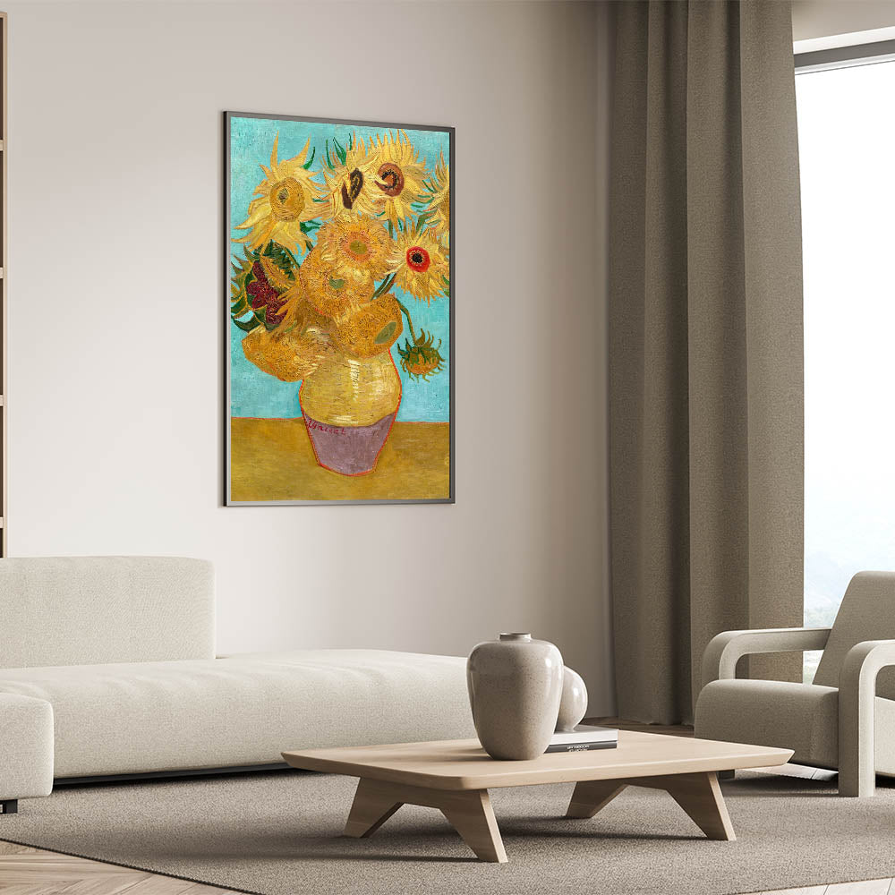 Brighten your home with the iconic beauty of Van Gogh canvas prints, featuring Sunflowers in a Yellow Vase. This masterpiece highlights Van Gogh’s love for nature and his extraordinary talent for capturing vibrant textures and colors. The golden sunflowers, complemented by a light blue background, create a striking contrast that brings warmth and vitality to any space.