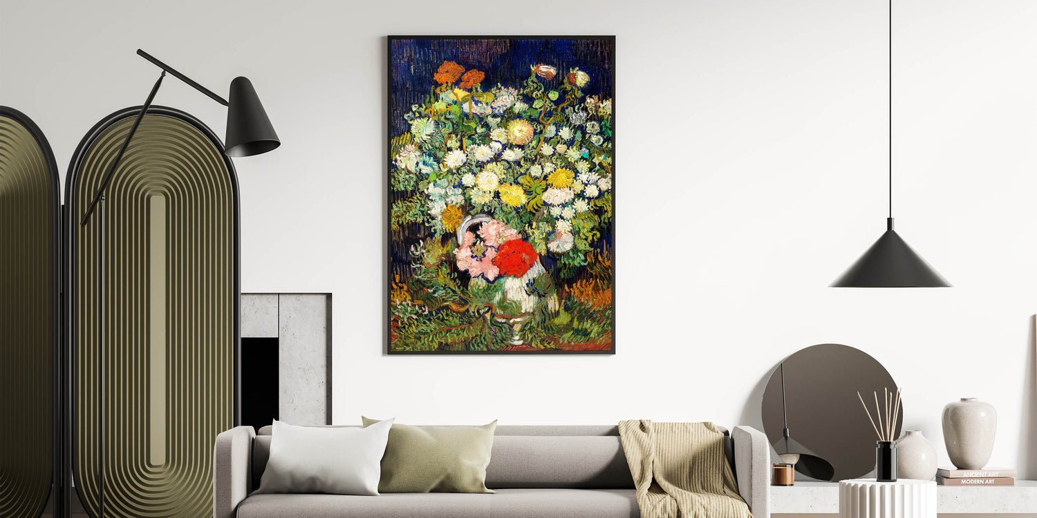 This Vincent van Gogh masterpiece is perfect for those seeking a bold focal point that combines nature and art. Celebrate the beauty of Impressionist art for sale with this iconic bouquet that enhances your décor with style and charm.