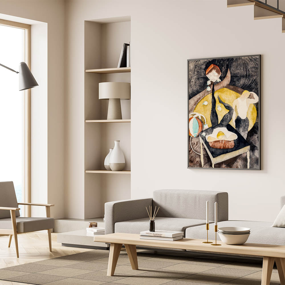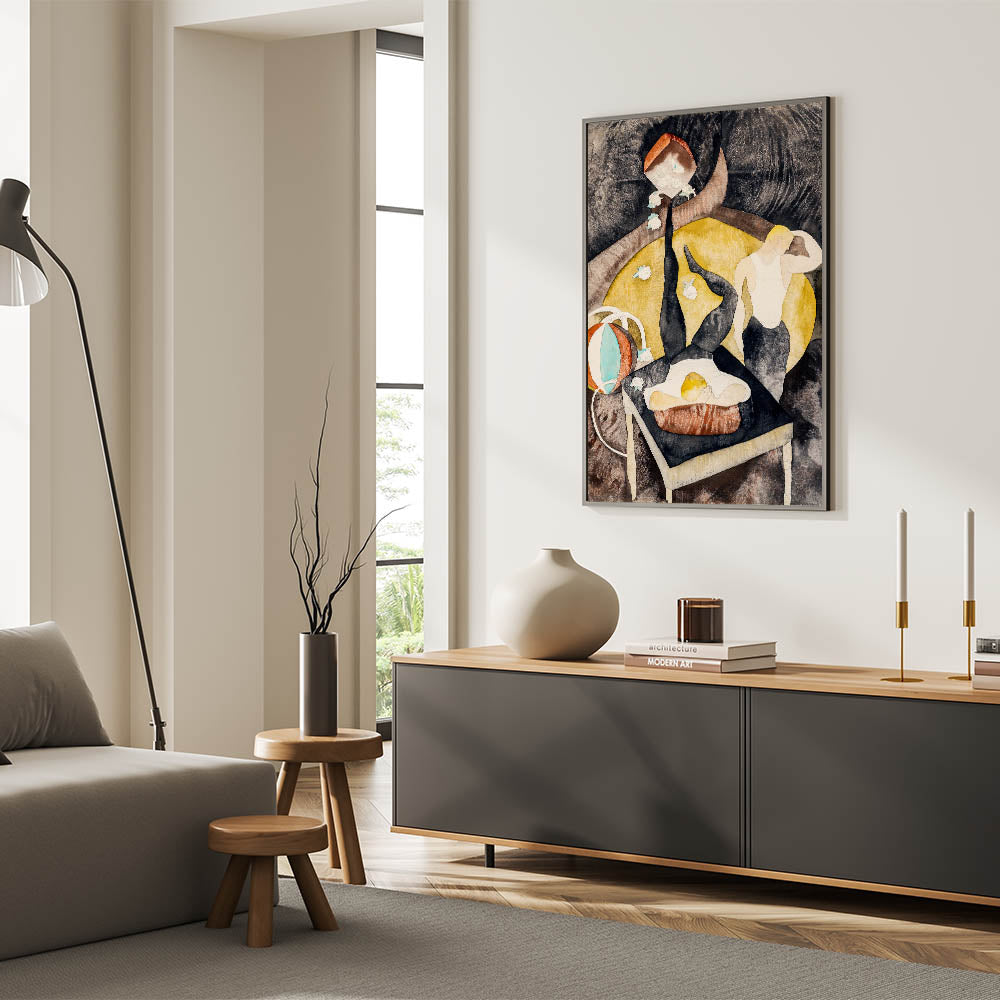 Bring a touch of theatrical whimsy to your space with "Vaudeville Acrobats," a captivating artwork inspired by the lively world of vaudeville. Painted by Charles Demuth, this piece features two acrobats in a playful, surreal scene, using a palette of vintage yellows, browns, and grays. Ideal for those who appreciate unique, narrative-driven art, this modern wall piece captures the energy and charm of early 20th-century entertainment, adding an artistic and nostalgic flair to any room.