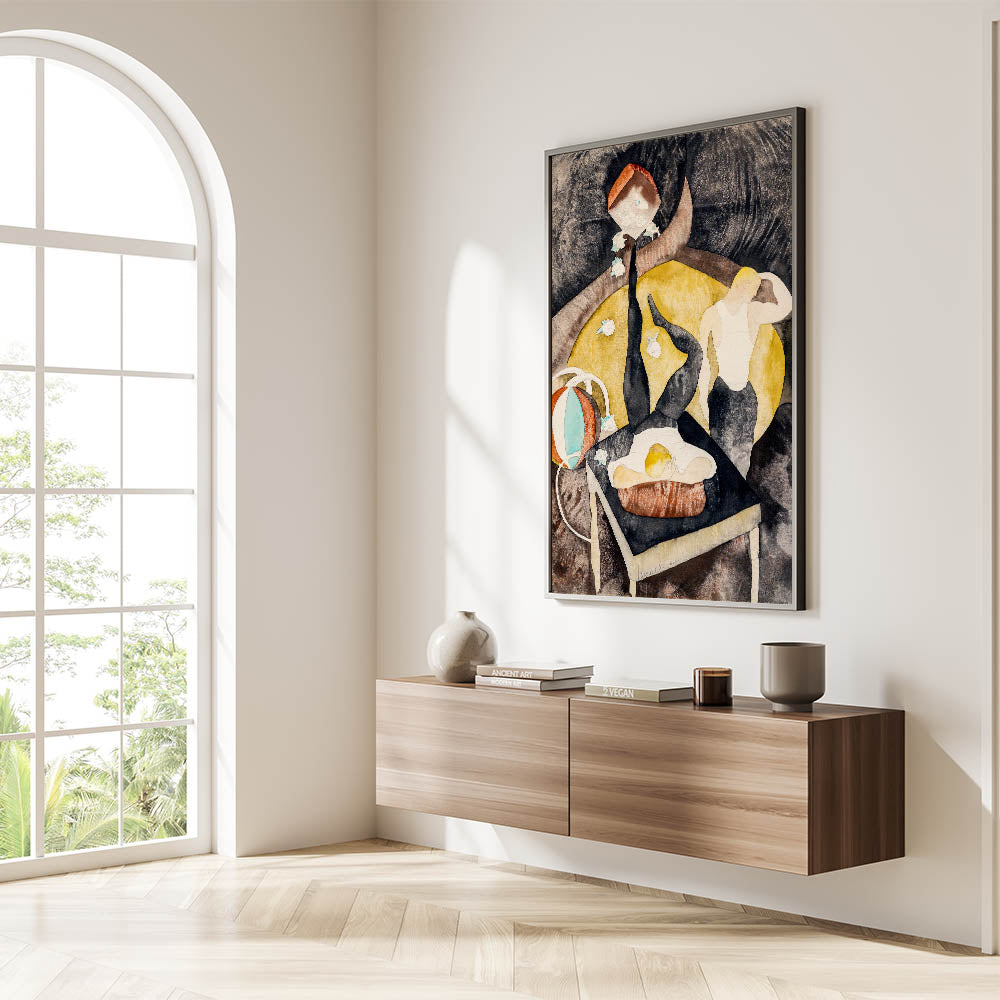 Celebrate the charm of vaudeville with this imaginative artwork that combines surrealism and storytelling. Its distinct style and vibrant composition make it a striking focal point, ideal for adding character and a touch of vintage magic to your decor.
