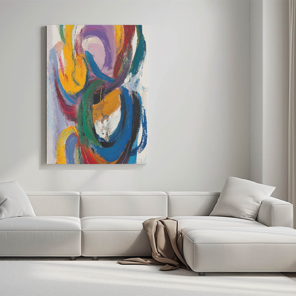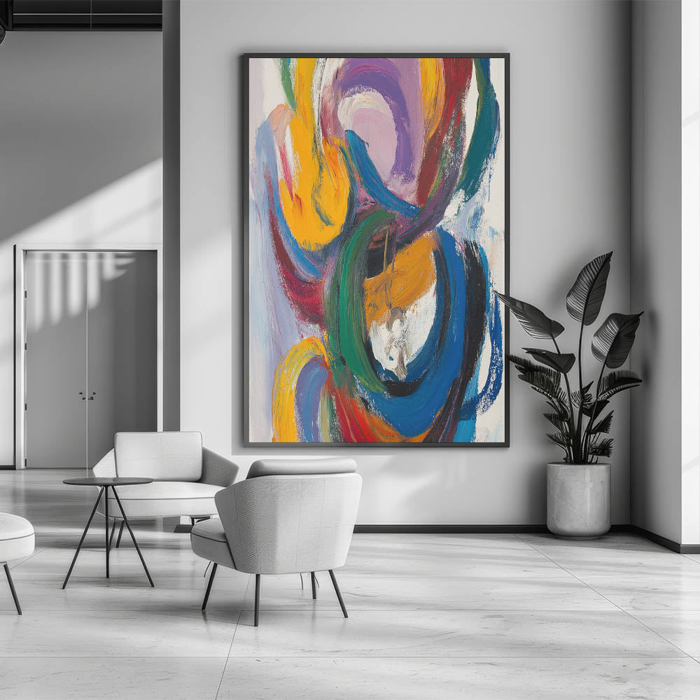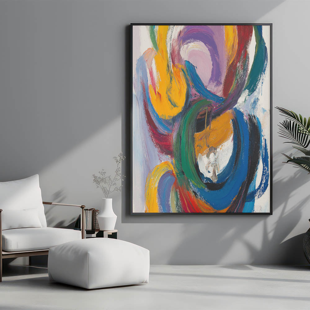 Infuse your space with energy and movement with this Abstract Expressionist Art for Home Decor. Featuring a captivating swirl of royal blue, yellow, red, green, and purple, this Original Abstract Expressionist Painting embodies the power of freeform artistic expression. The Expressionist Canvas Wall Art showcases fluid brushstrokes that create a dynamic and engaging focal point for any modern interior.