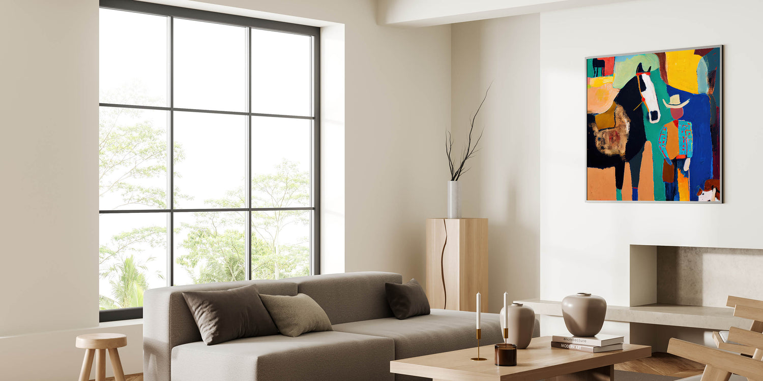 Vibrant Western Living Room Wall Art – Cowboy & Horse Canvas