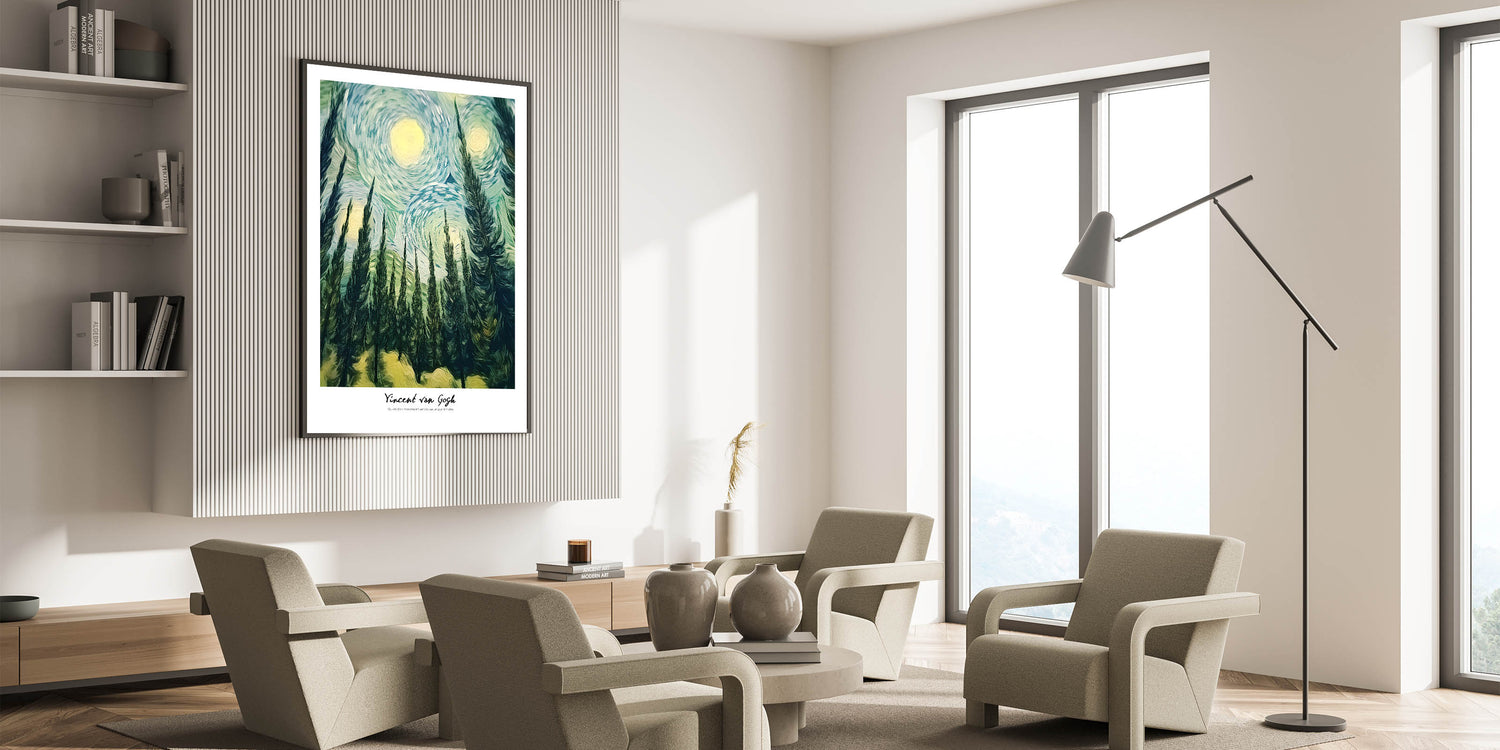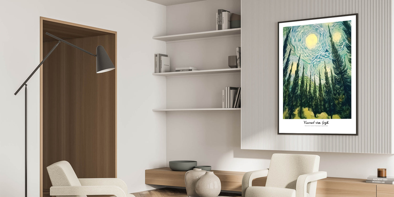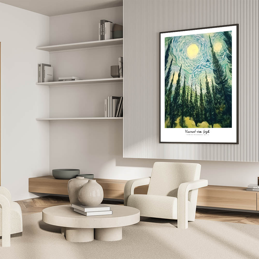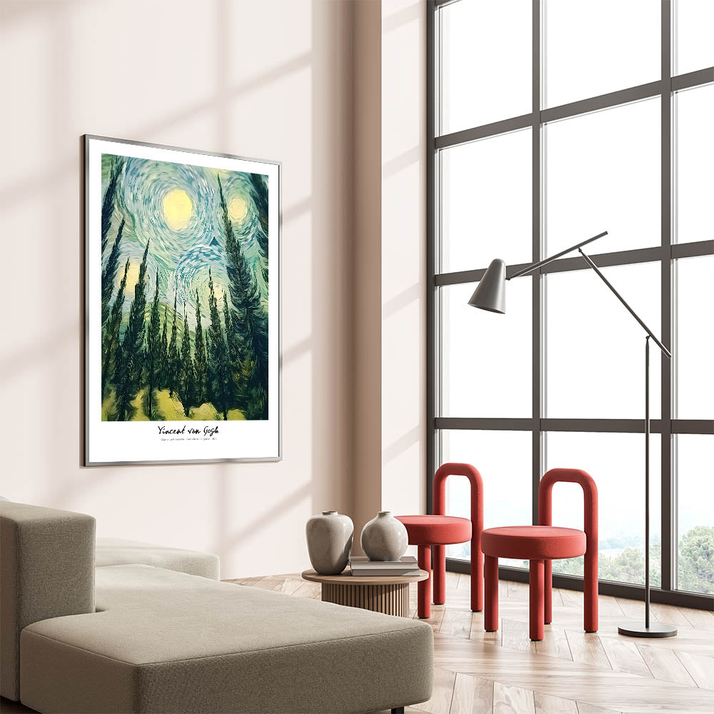 Transform your space with the iconic beauty of Vincent van Gogh's work, showcasing his distinct, swirling style. This Starry Night-inspired wall art brings the vibrant energy of Impressionist art into your home. Available in multiple formats, this piece captures Van Gogh's essence in stunning detail, from the majestic trees to the luminous night sky.