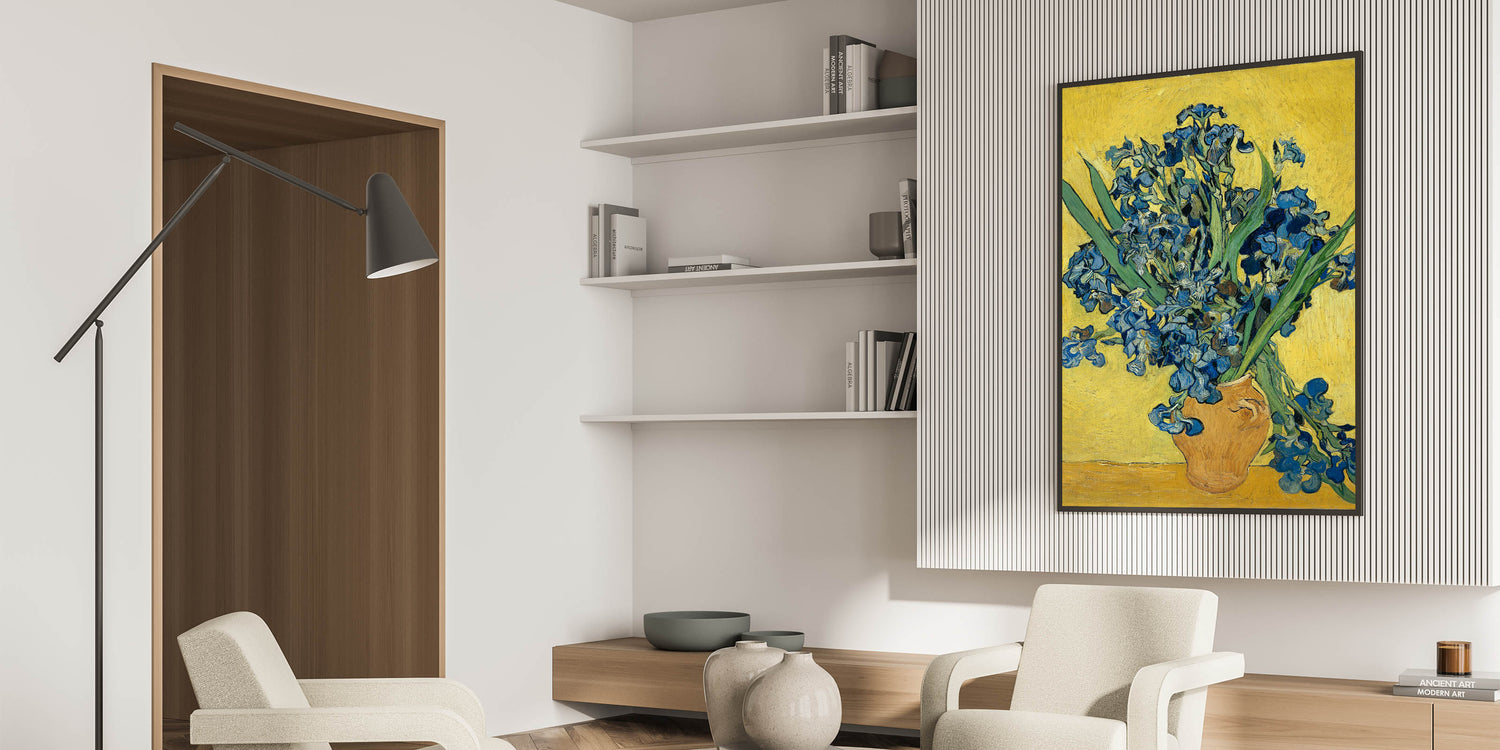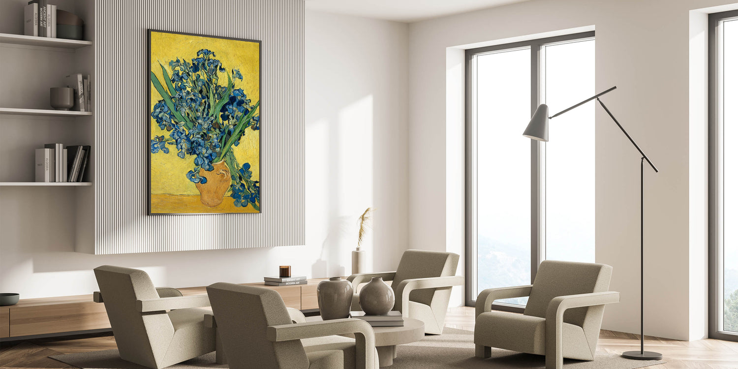 "Irises in a Vase" by Vincent van Gogh brings a touch of classic Impressionist beauty to your home. Whether you're an art enthusiast or looking to enhance your decor, this vibrant piece is sure to captivate and inspire. Add this iconic artwork to your collection today.