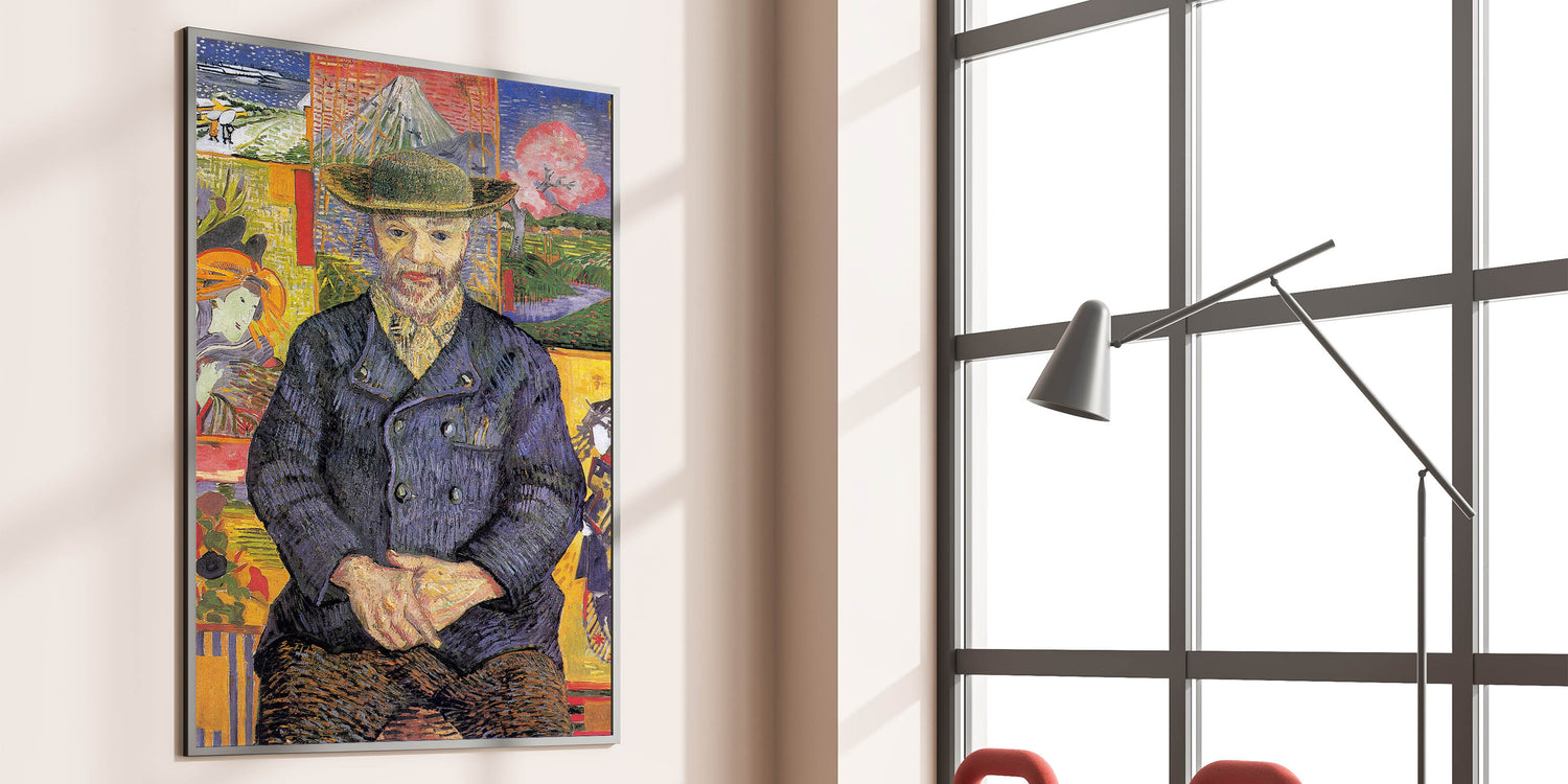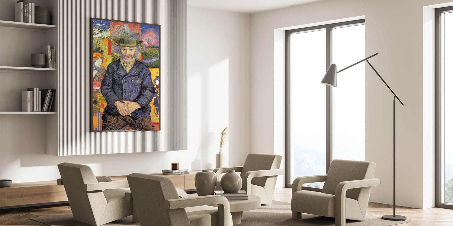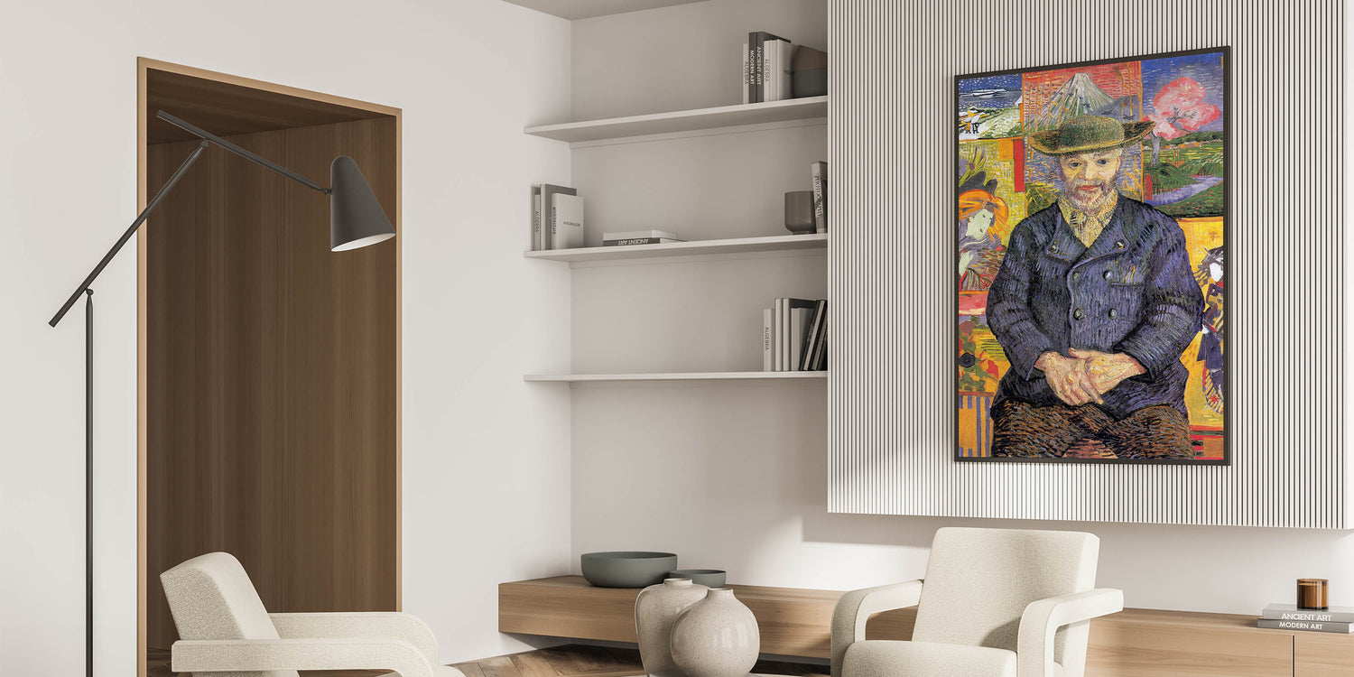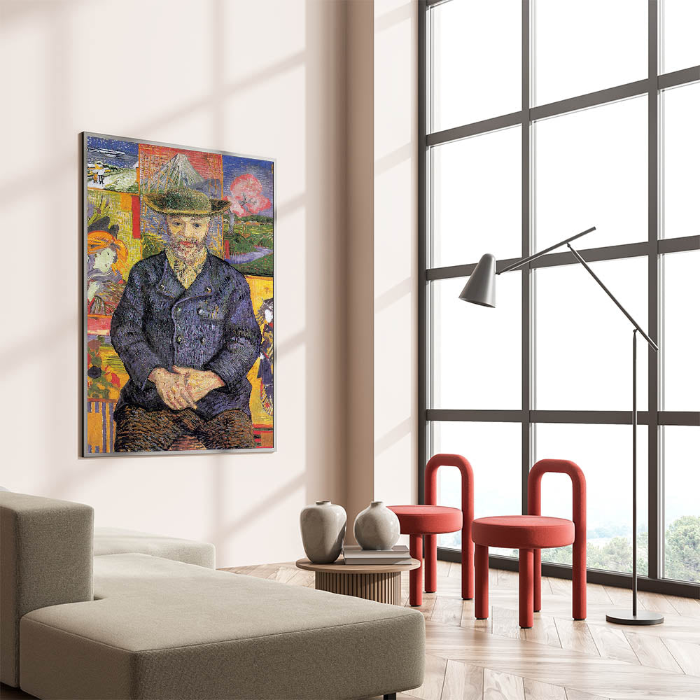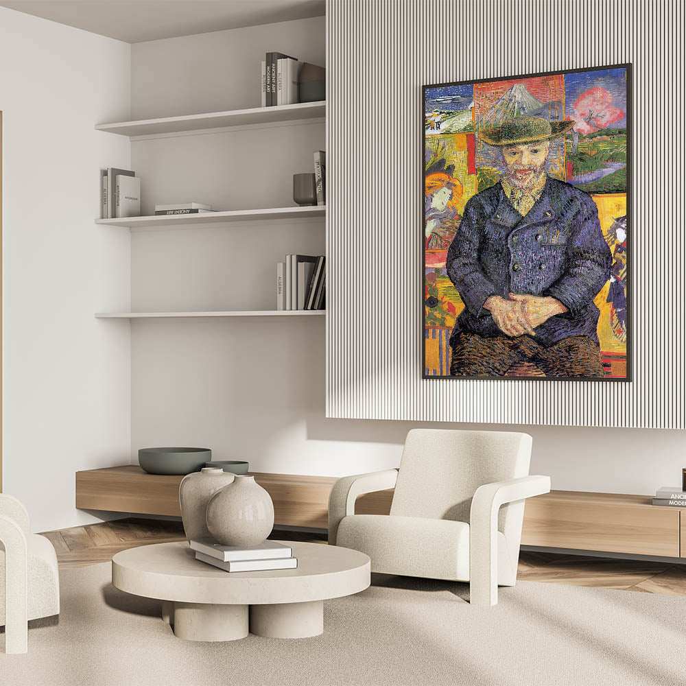 Enhance your collection with the timeless charm of Vincent van Gogh wall art, featuring the Portrait of Père Tanguy. This masterpiece showcases Van Gogh’s unique use of color and composition, with Père Tanguy seated calmly against a vibrant background of Japanese-inspired prints and serene landscapes. The layered details and bold brushstrokes make this artwork a striking addition to any space.