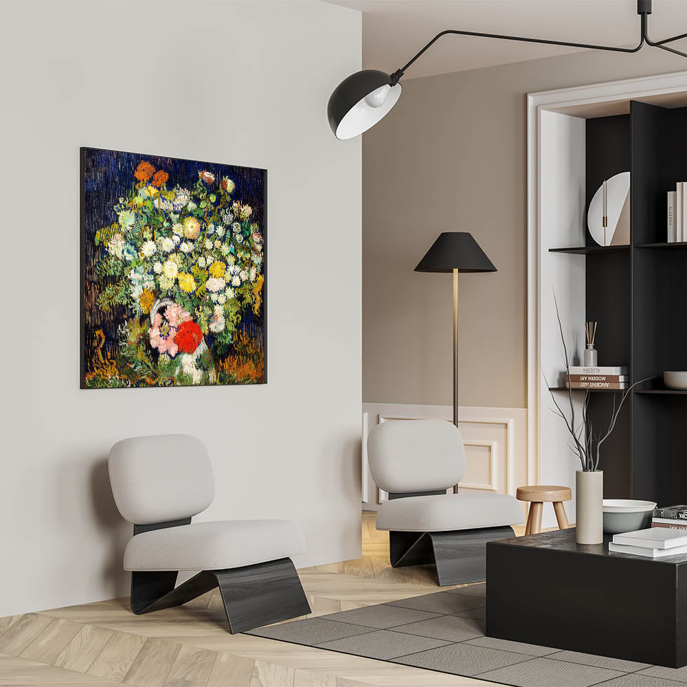 Transform your space with the timeless elegance of Vincent van Gogh's wall art, showcasing a stunning bouquet of flowers. This vibrant reproduction from the Van Gogh art collection captures the intricate details and emotional depth of his famous floral masterpieces. Ideal for adding a burst of color and sophistication to any room, this artwork is a must-have for fans of Van Gogh wall decor.