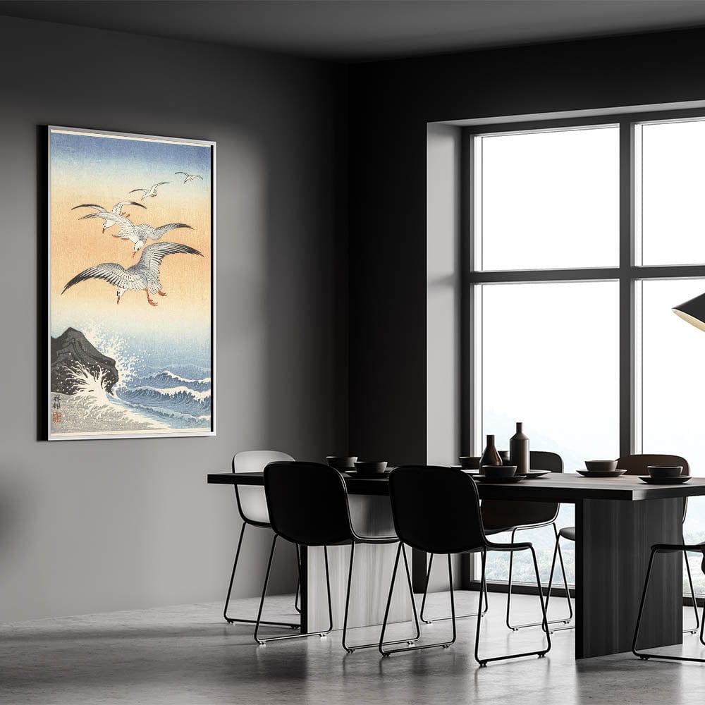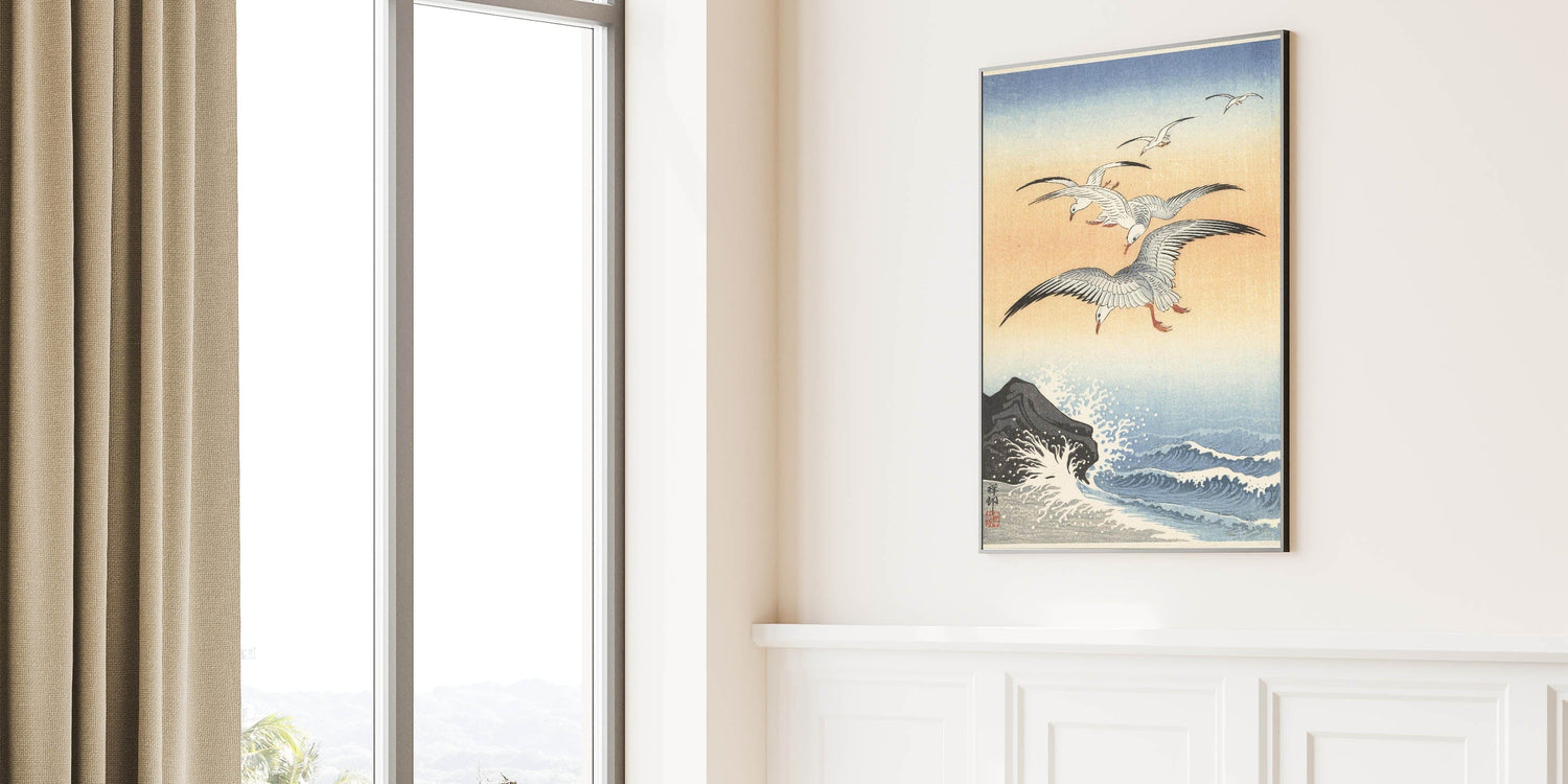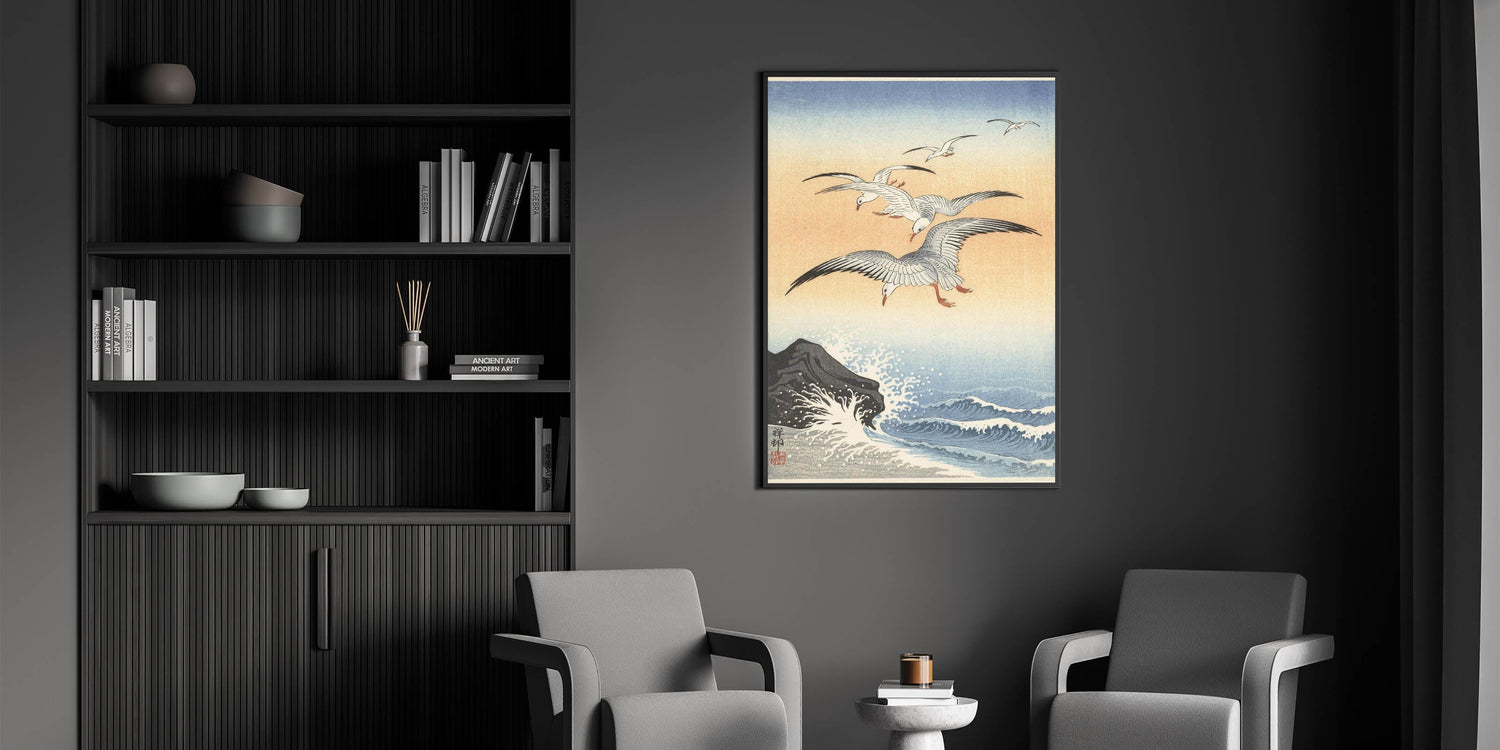 Bring the serene energy of the ocean into your space with this stunning seagull illustration, perfect for adding a touch of nature’s elegance to any room.