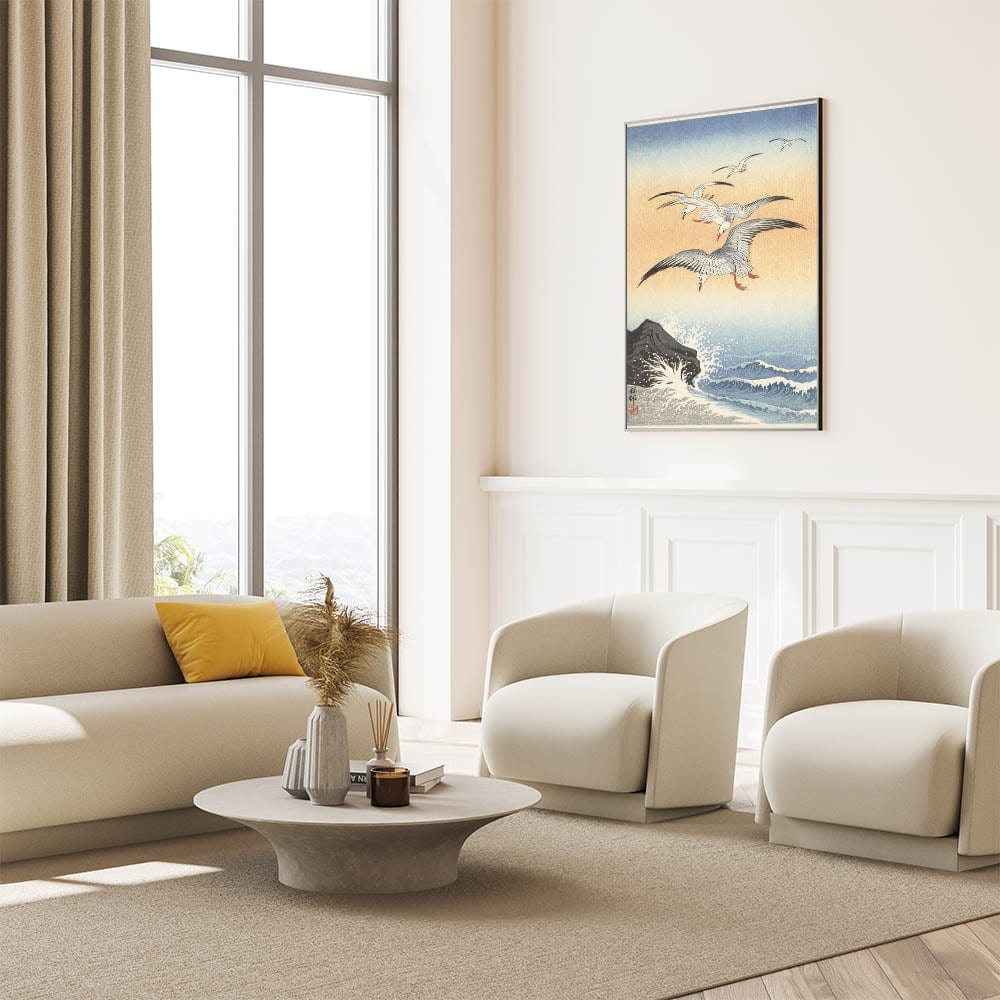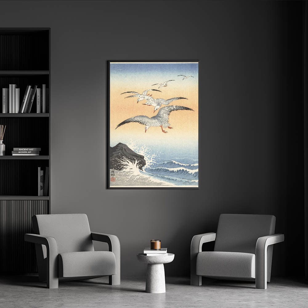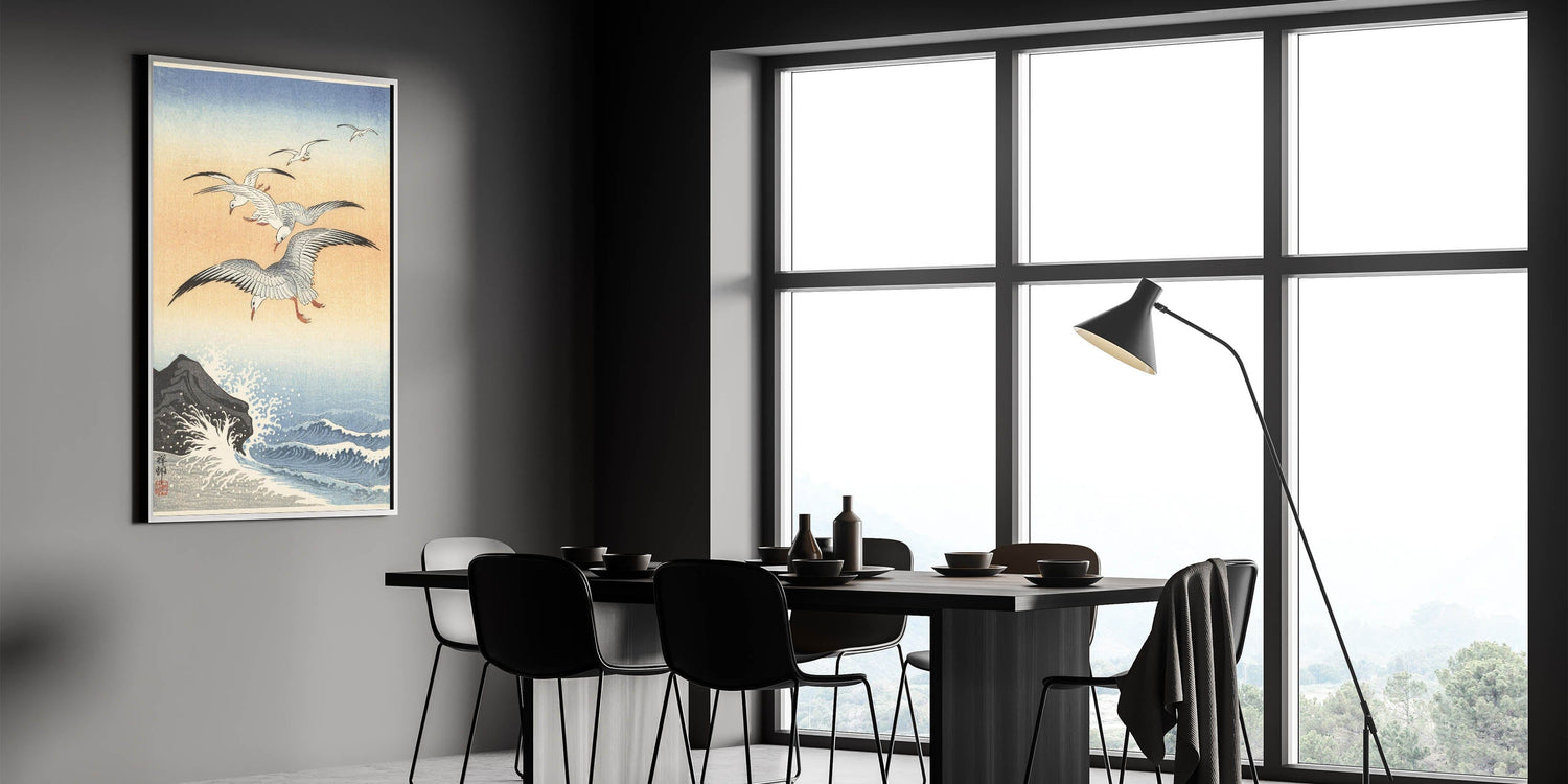 Bring the serene energy of the ocean into your space with this stunning seagull illustration, perfect for adding a touch of nature’s elegance to any room.
