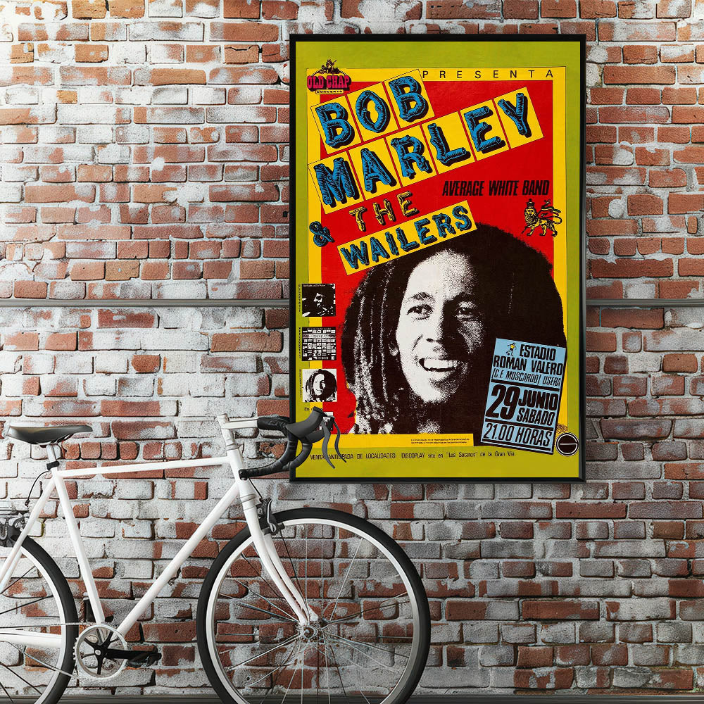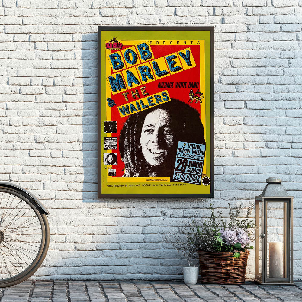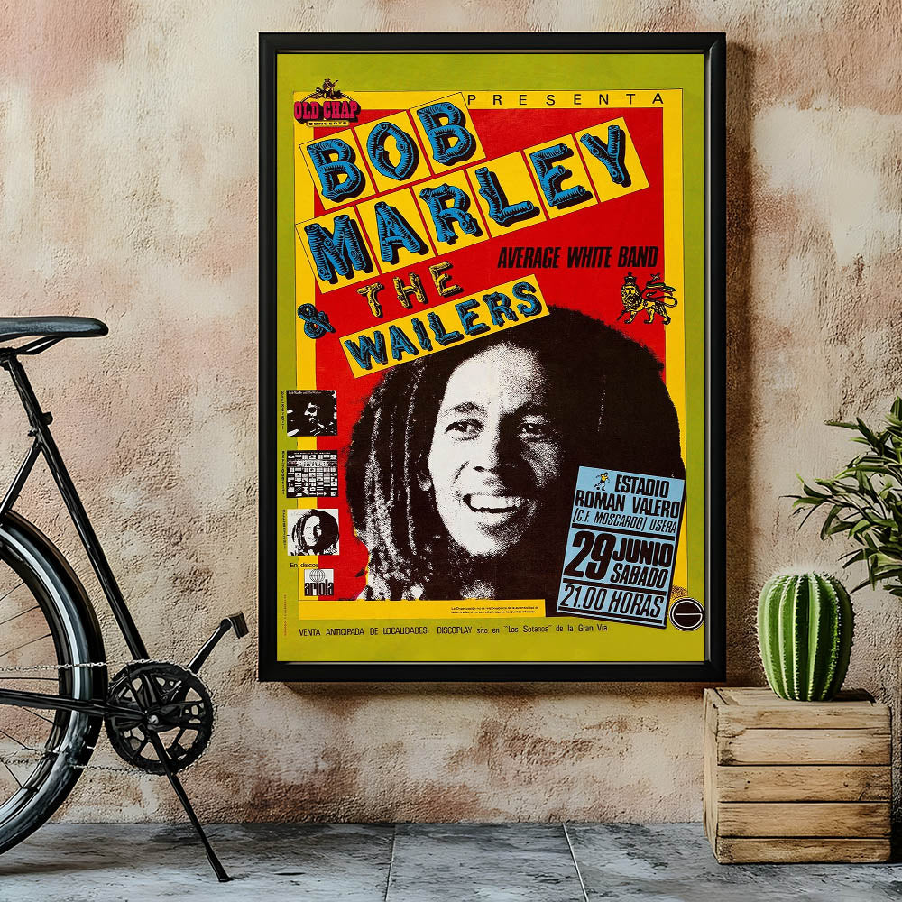 Celebrate the legendary Bob Marley & The Wailers with this vibrant Vintage Concert Poster from their iconic performance with Average White Band. Featuring bold red, yellow, and green colors, this retro music wall art perfectly captures the spirit of classic reggae music and nostalgic art prints. Ideal for fans of Bob Marley, this poster embodies the retro aesthetic and is a must-have for any vintage decor collection. Its playful, bold design brings a timeless retro style to any room.