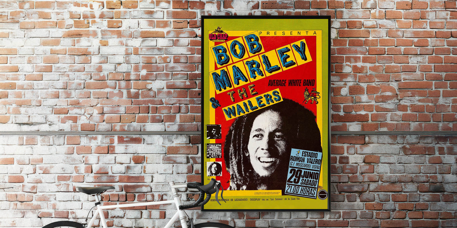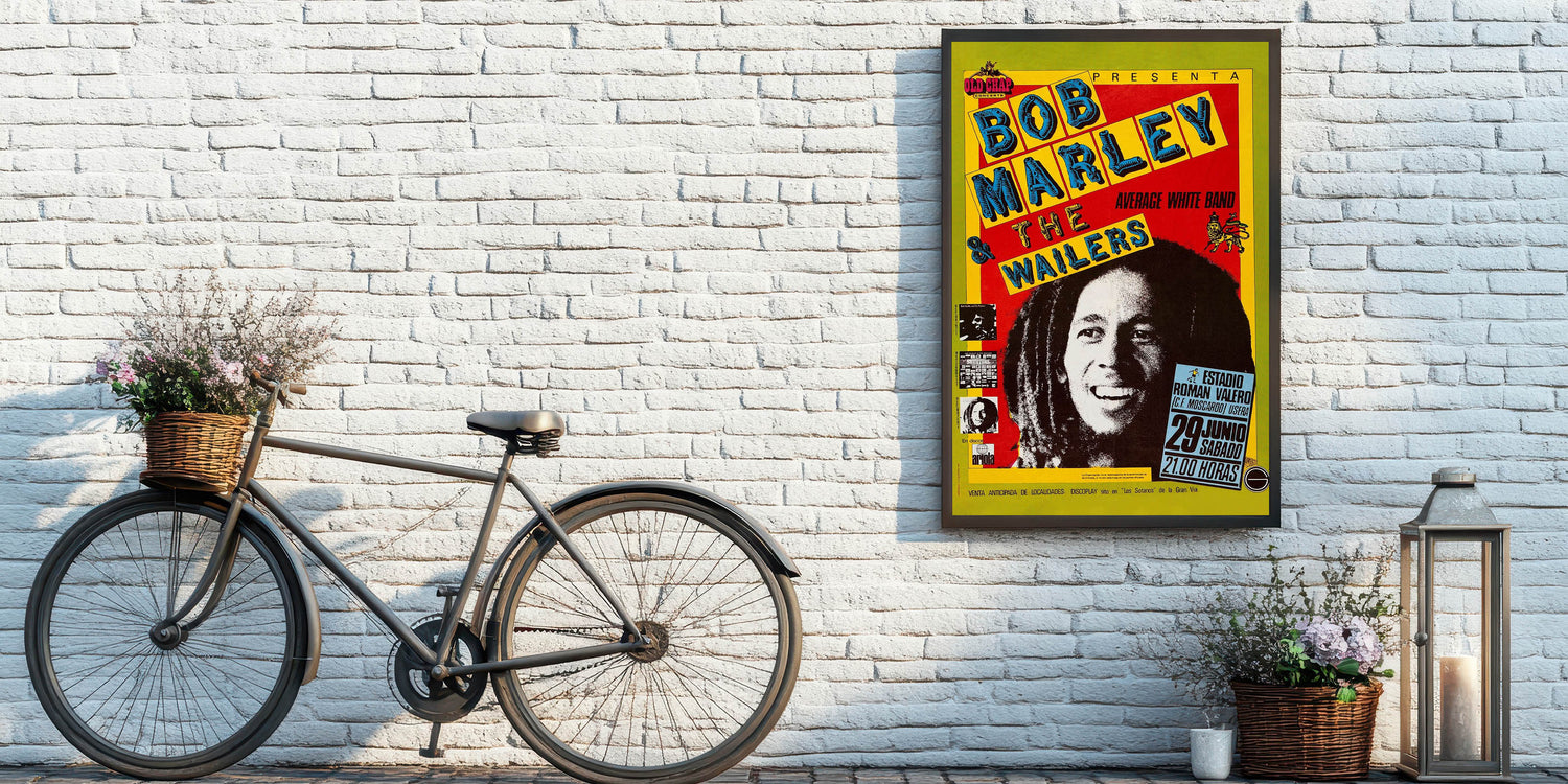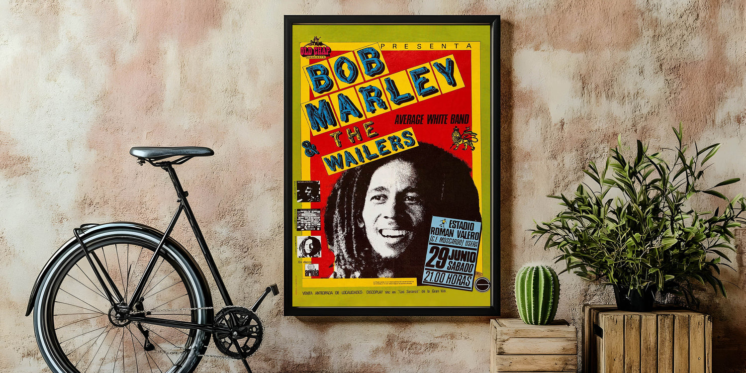 Celebrate the legendary Bob Marley & The Wailers with this vibrant Vintage Concert Poster from their iconic performance with Average White Band. Featuring bold red, yellow, and green colors, this retro music wall art perfectly captures the spirit of classic reggae music and nostalgic art prints. Ideal for fans of Bob Marley, this poster embodies the retro aesthetic and is a must-have for any vintage decor collection. Its playful, bold design brings a timeless retro style to any room.