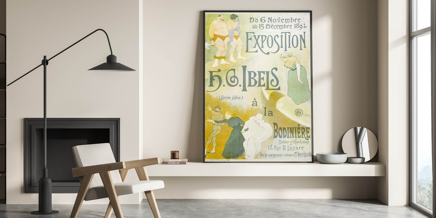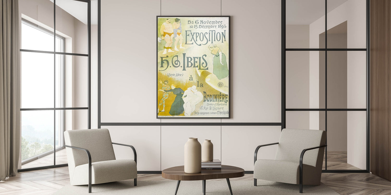 - A timeless vintage exhibition poster showcasing the works of H.G. Ibels