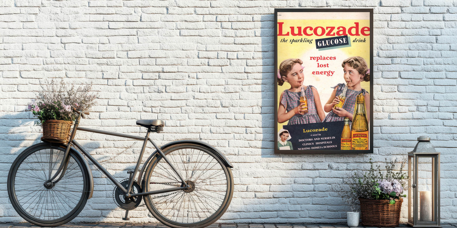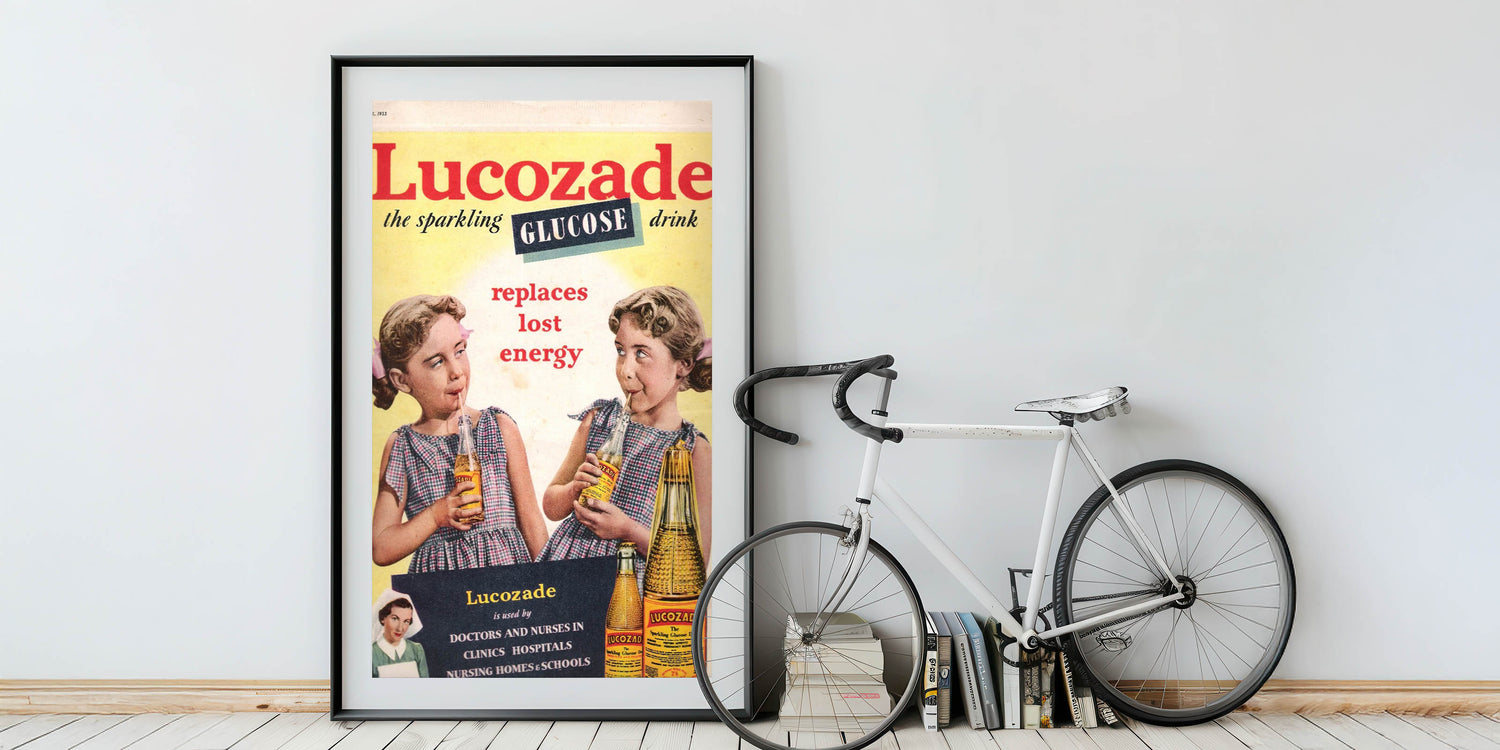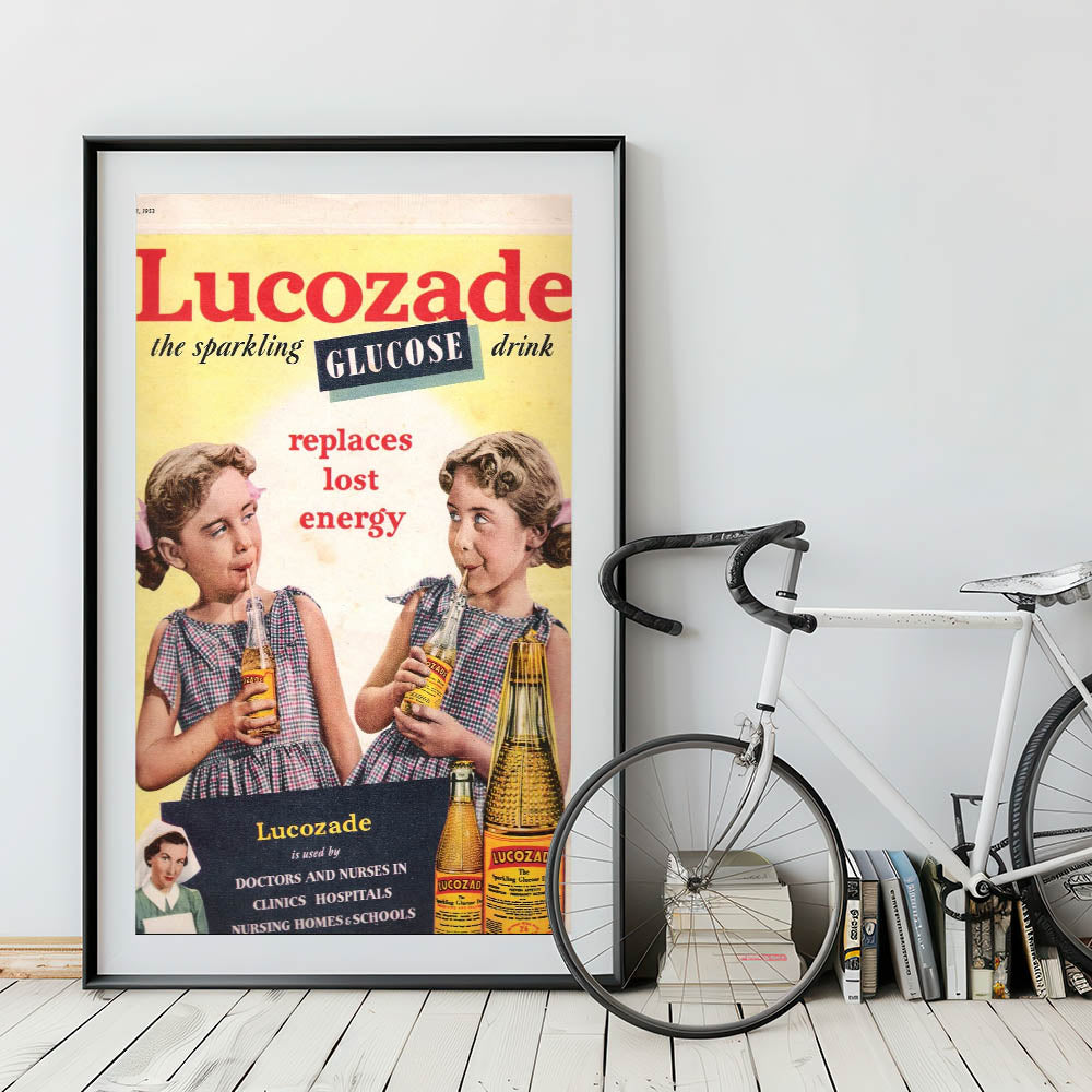Add a burst of energy and nostalgia to your decor with this timeless Lucozade ad.