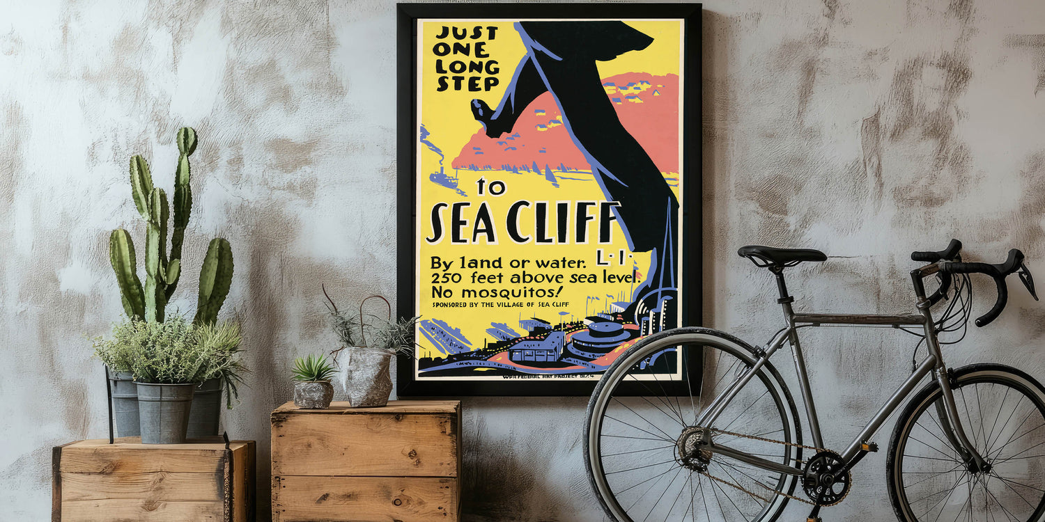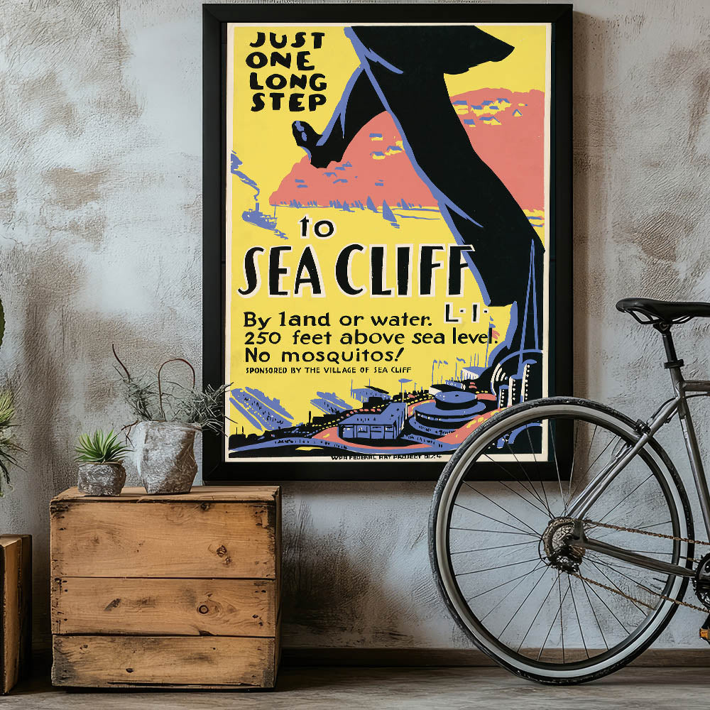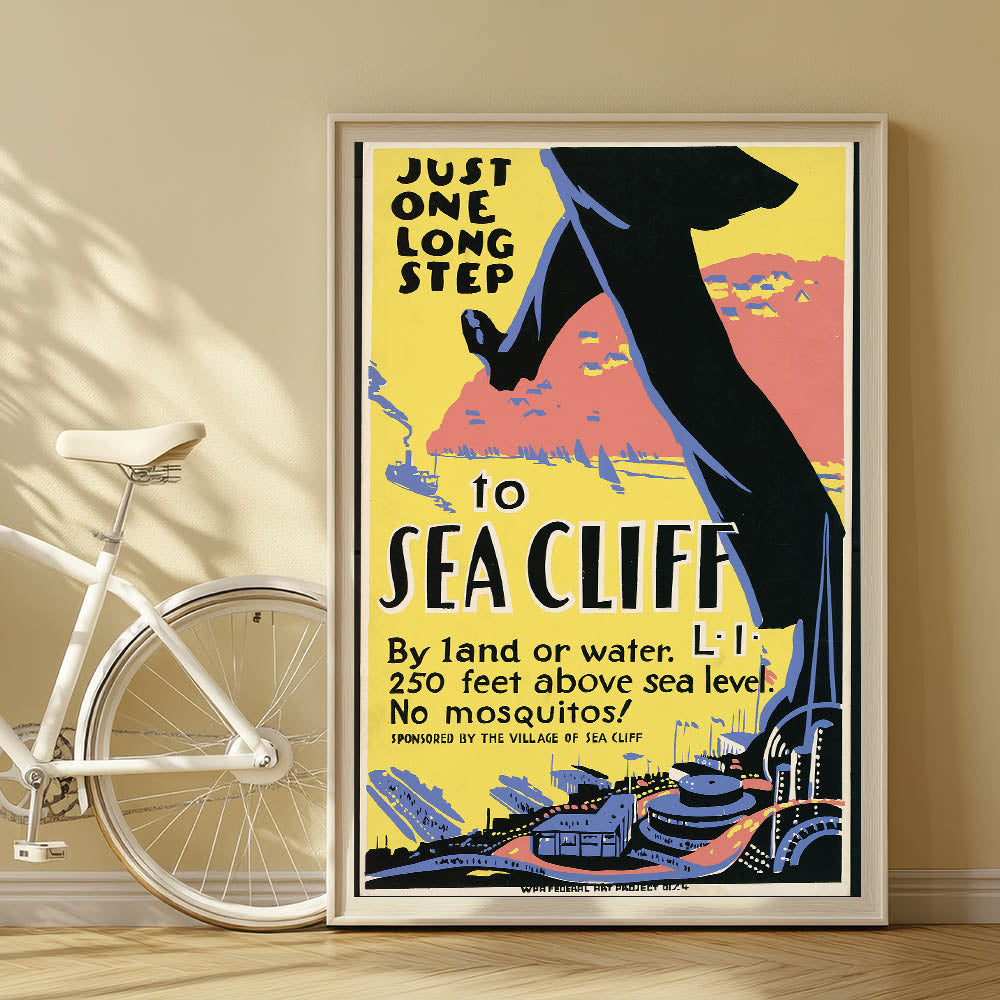Vintage Sea Cliff Travel Poster – Retro Long Step to Sea Cliff Art