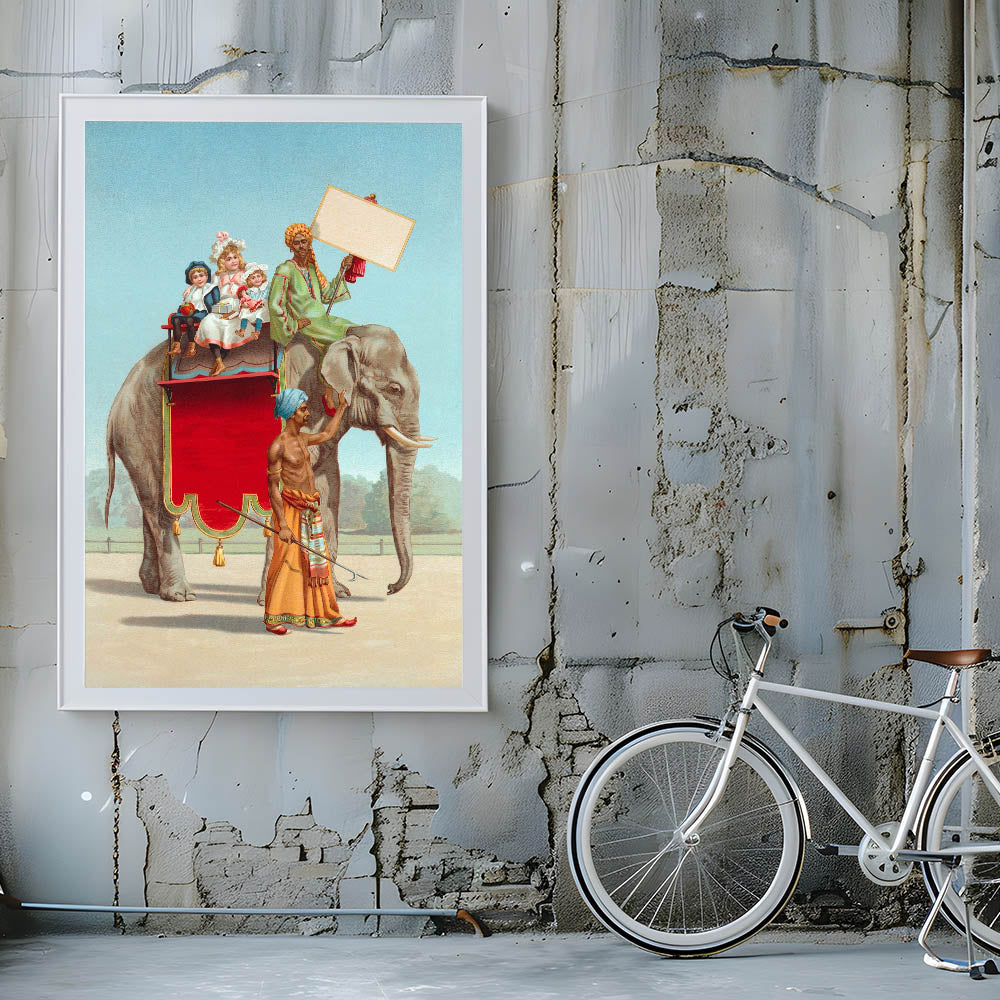 Vintage Travel Poster - Circus Elephant Ride | Retro Family Fun Art