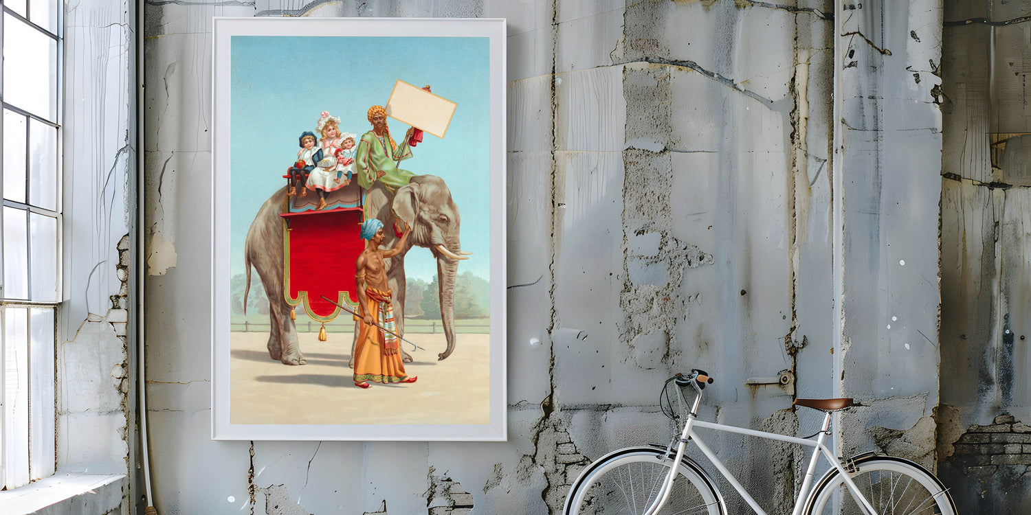 Transform your space with the joy and nostalgia of this vintage circus print. Its bright colors and captivating design make it an instant focal point in any room. Order now to bring the whimsical world of the circus into your home!