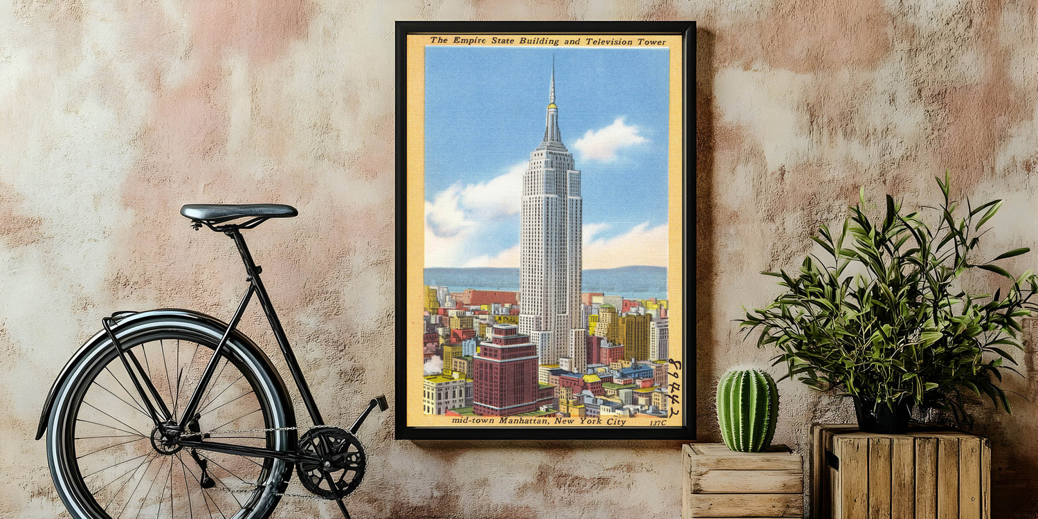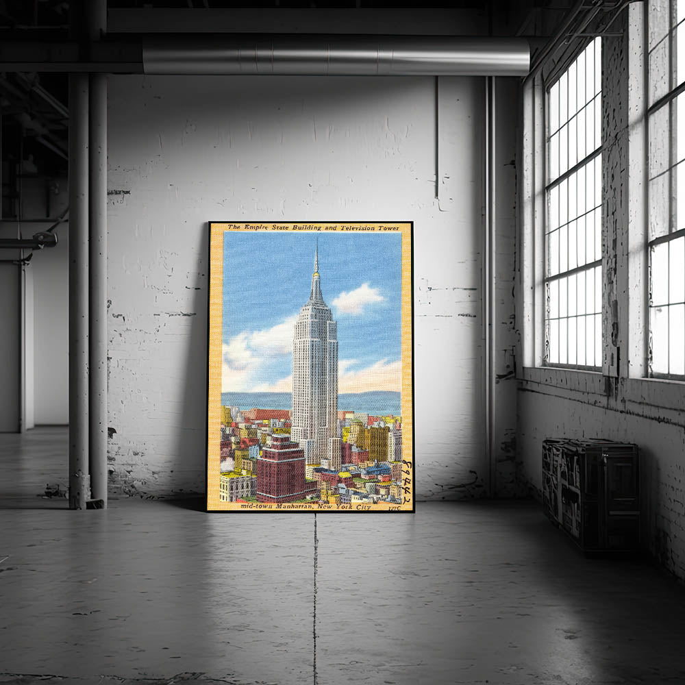 This authentic vintage travel art will elevate your home or office with a touch of heritage travel illustrations and iconic NYC vibes. Whether you're a fan of retro travel prints or simply admire the elegance of the Empire State Building, this piece will be a conversation starter for years to come.