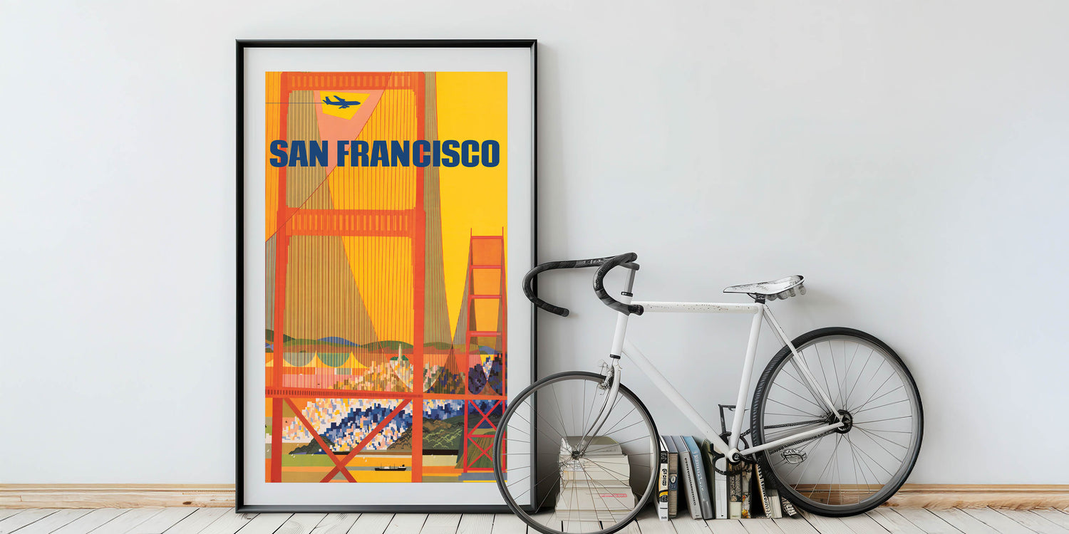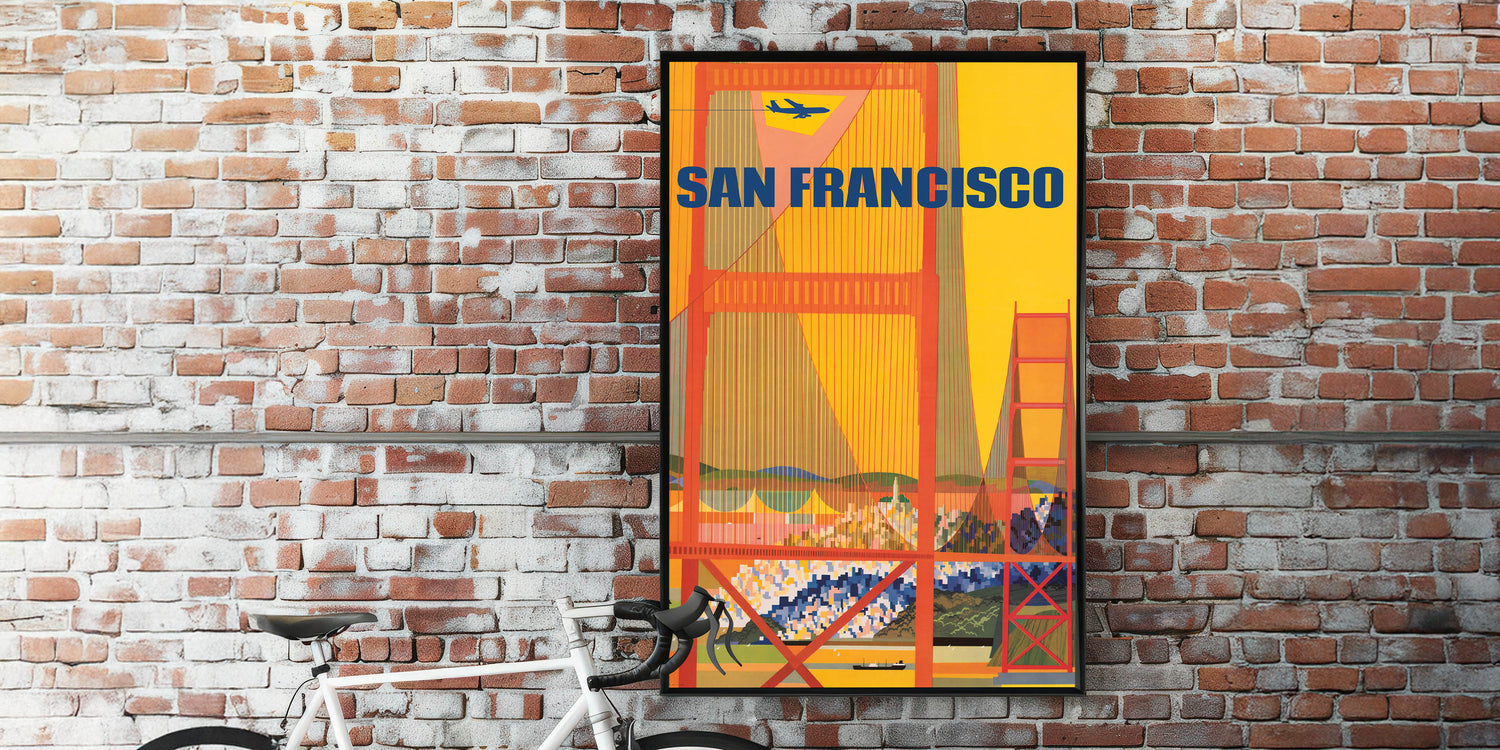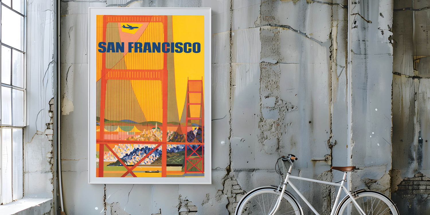 Transform your space with the bold tones and detailed design of this nostalgic travel print. Its lively colors and iconic imagery make it a captivating focal point. Order now to bring the essence of San Francisco into your home!