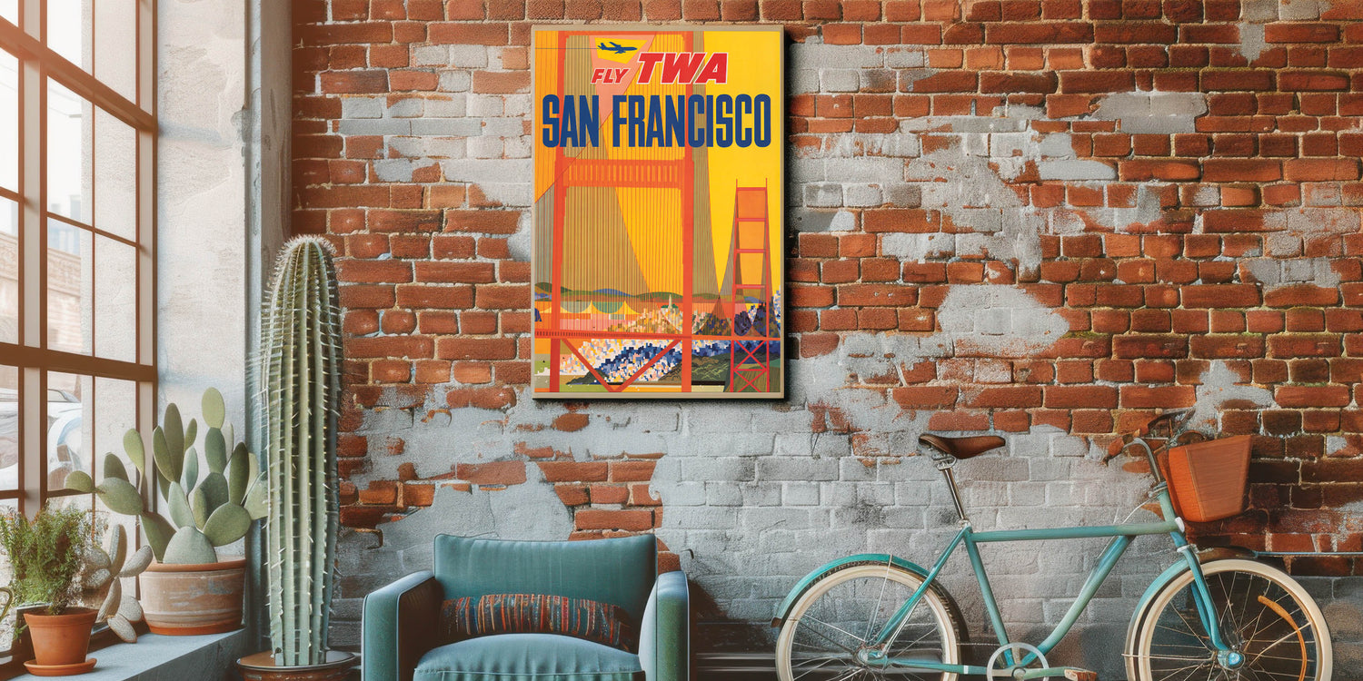 Transform your space with this nostalgic travel print, celebrating the history and charm of San Francisco. Perfect for those who appreciate classic travel decor and heritage travel illustrations.