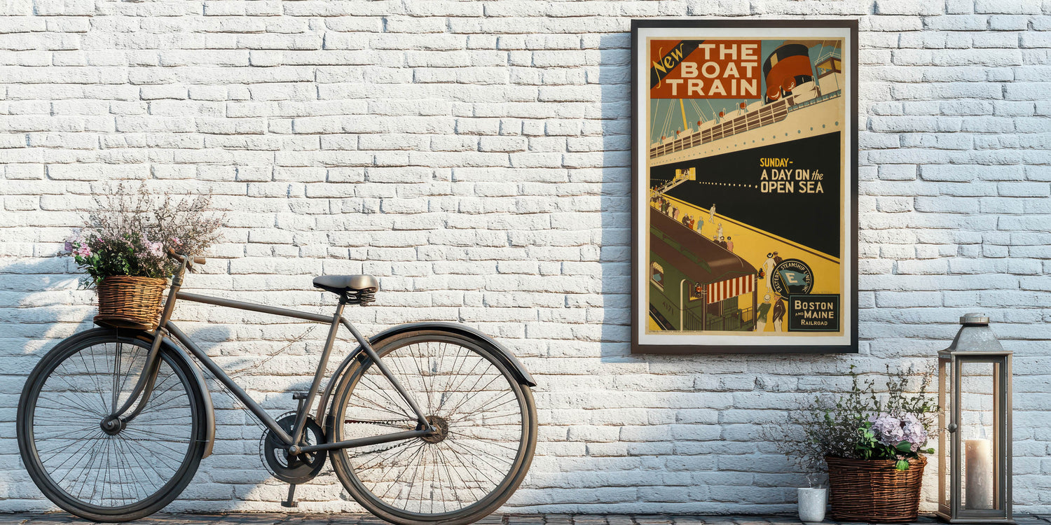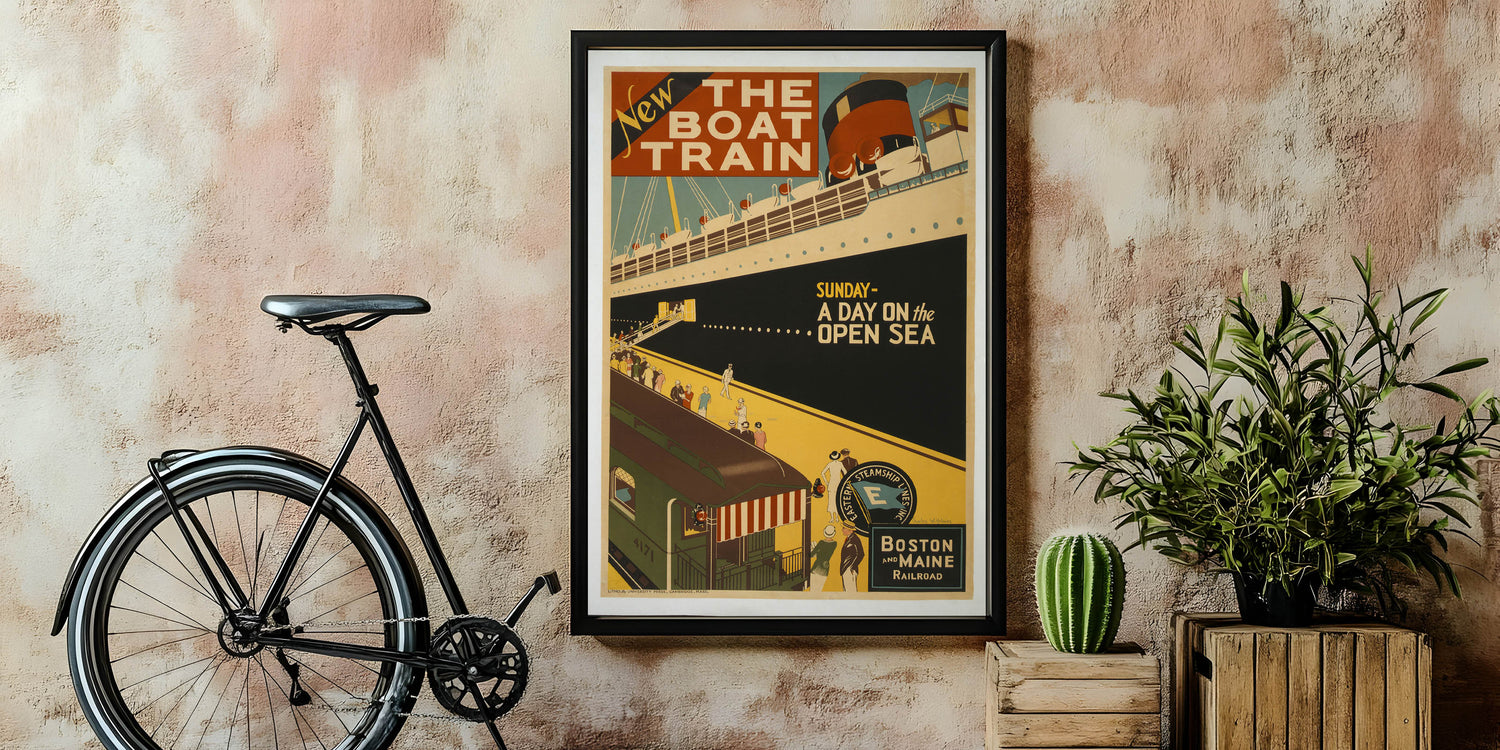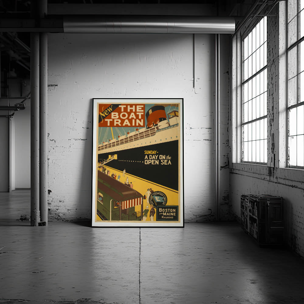Transform your space with this nostalgic travel print, celebrating the history and charm of maritime and rail adventures. Perfect for those who appreciate classic travel decor and heritage travel illustrations.