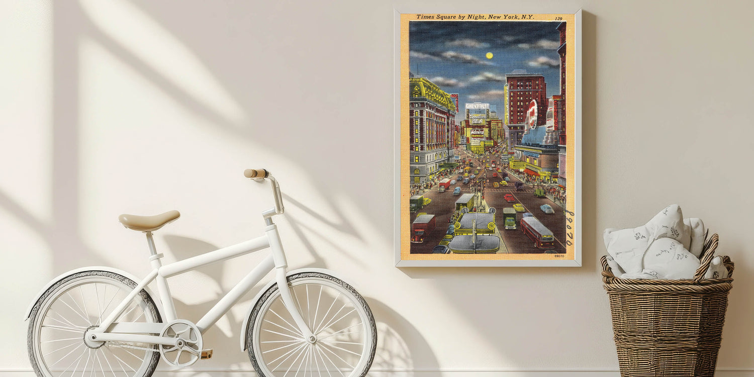 Bring the energy and excitement of New York's famous streets into your space with this eye-catching piece of retro travel art. Its timeless design is perfect for any room, from living areas to offices, and makes a wonderful addition to your classic travel decor.