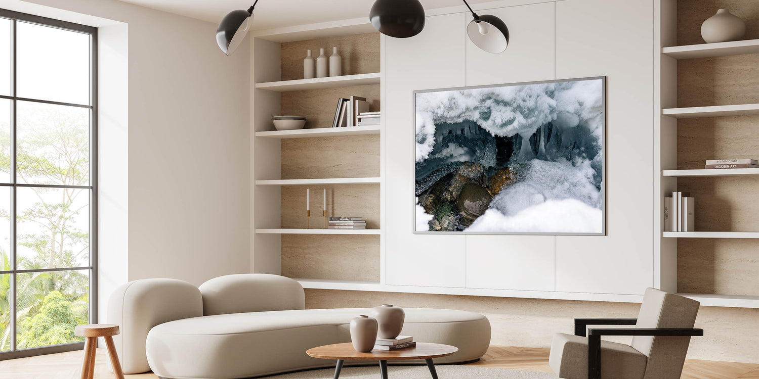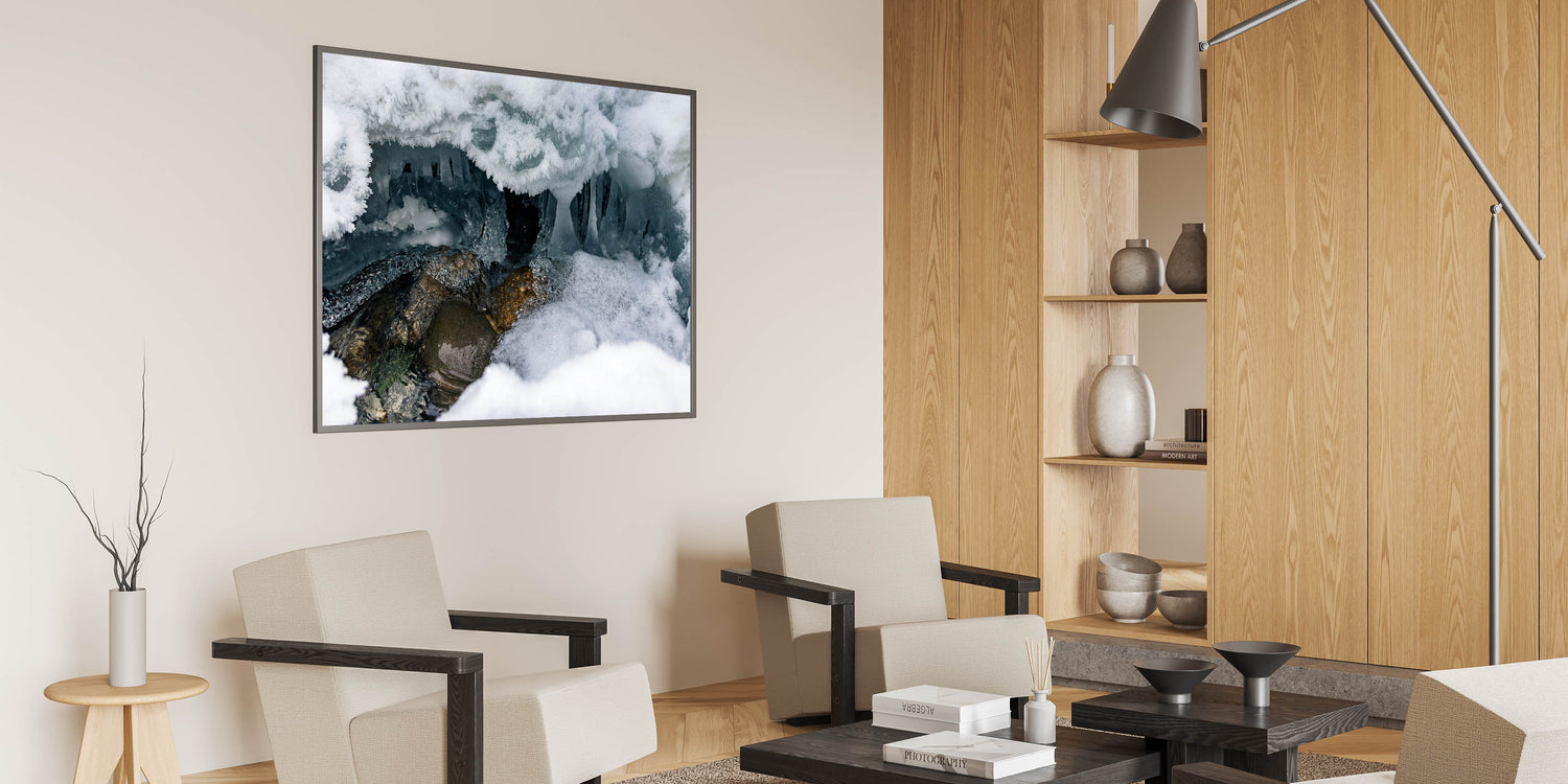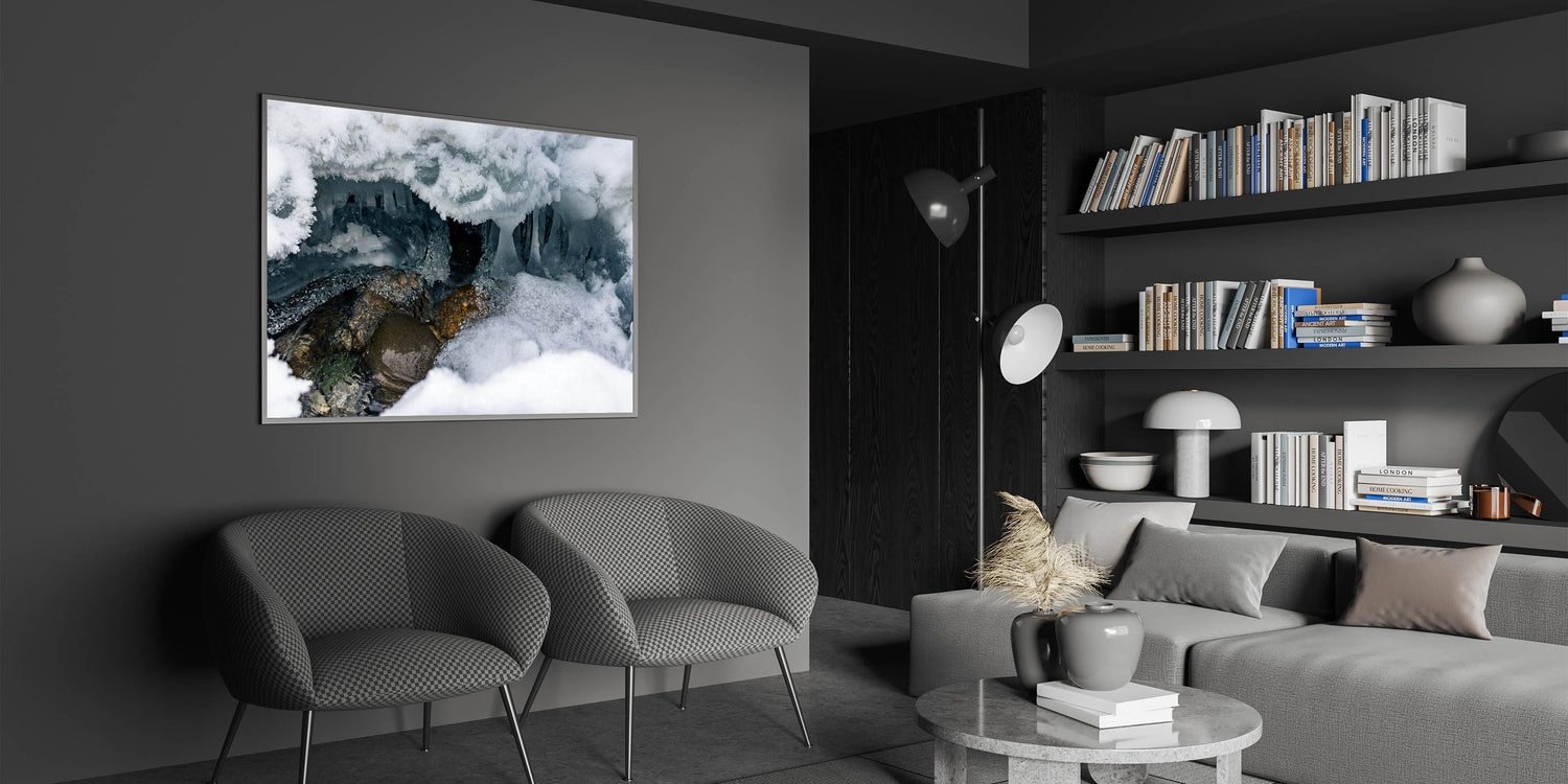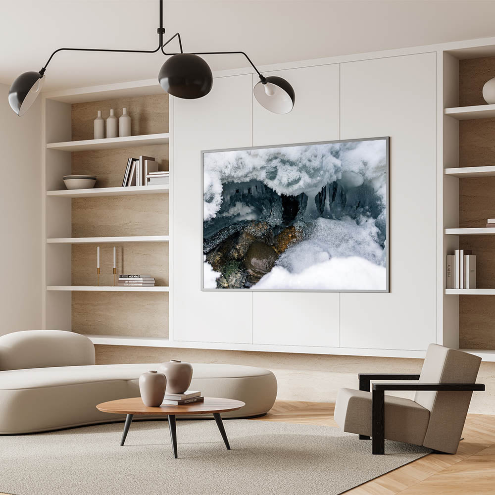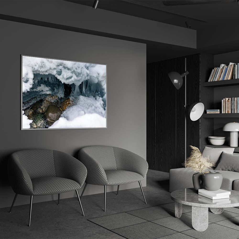 Ideal for adventurers and nature lovers alike, this canvas print transports the mysterious beauty of Yukon’s ice caves directly to your living space or office.