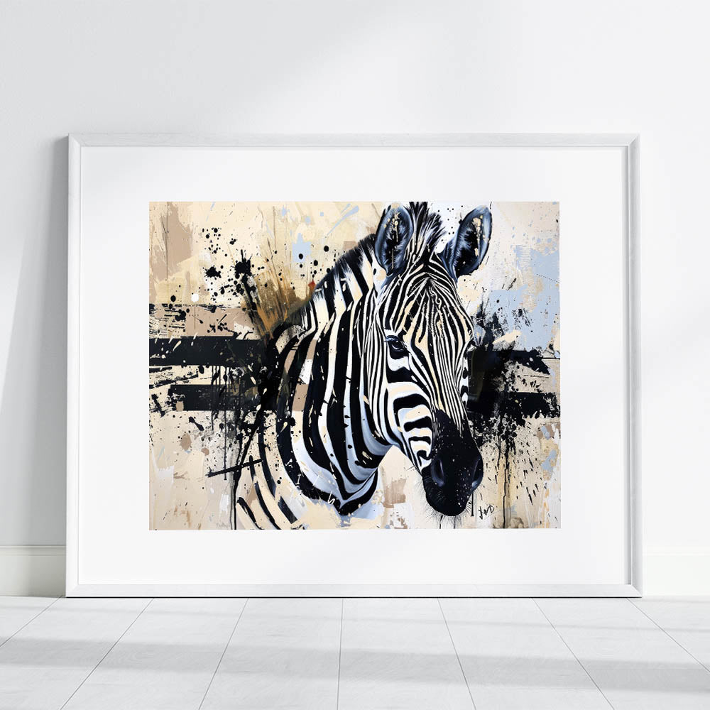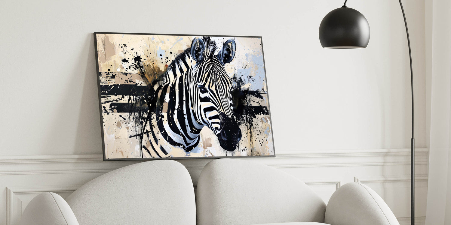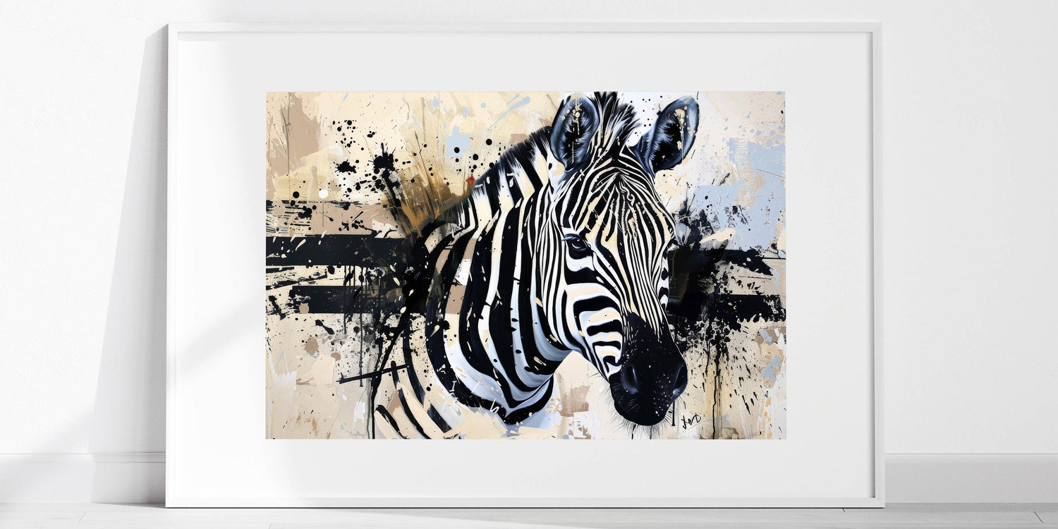 Elevate your space with the raw energy of this Abstract Zebra wall art, where bold textures and dynamic brushstrokes merge to create a striking visual experience. The mix of earthy tones and contrasting black and white stripes offers a unique and contemporary take on the classic zebra imagery. This piece is ideal for those who appreciate the fusion of wildlife and abstract art, making it a perfect addition to modern, industrial, or eclectic interiors. Available in various formats such as Stretched Canvas, Framed Canvas, Acrylic Glass, Framed Acrylic Glass, Framed Print, Rolled Canvas, and Rolled Print, this artwork is as versatile as it is captivating.