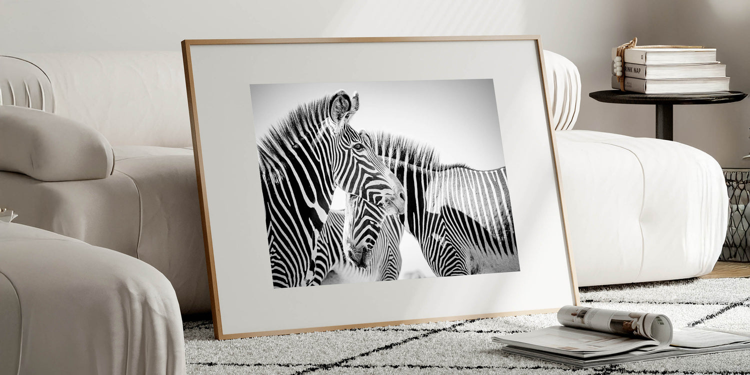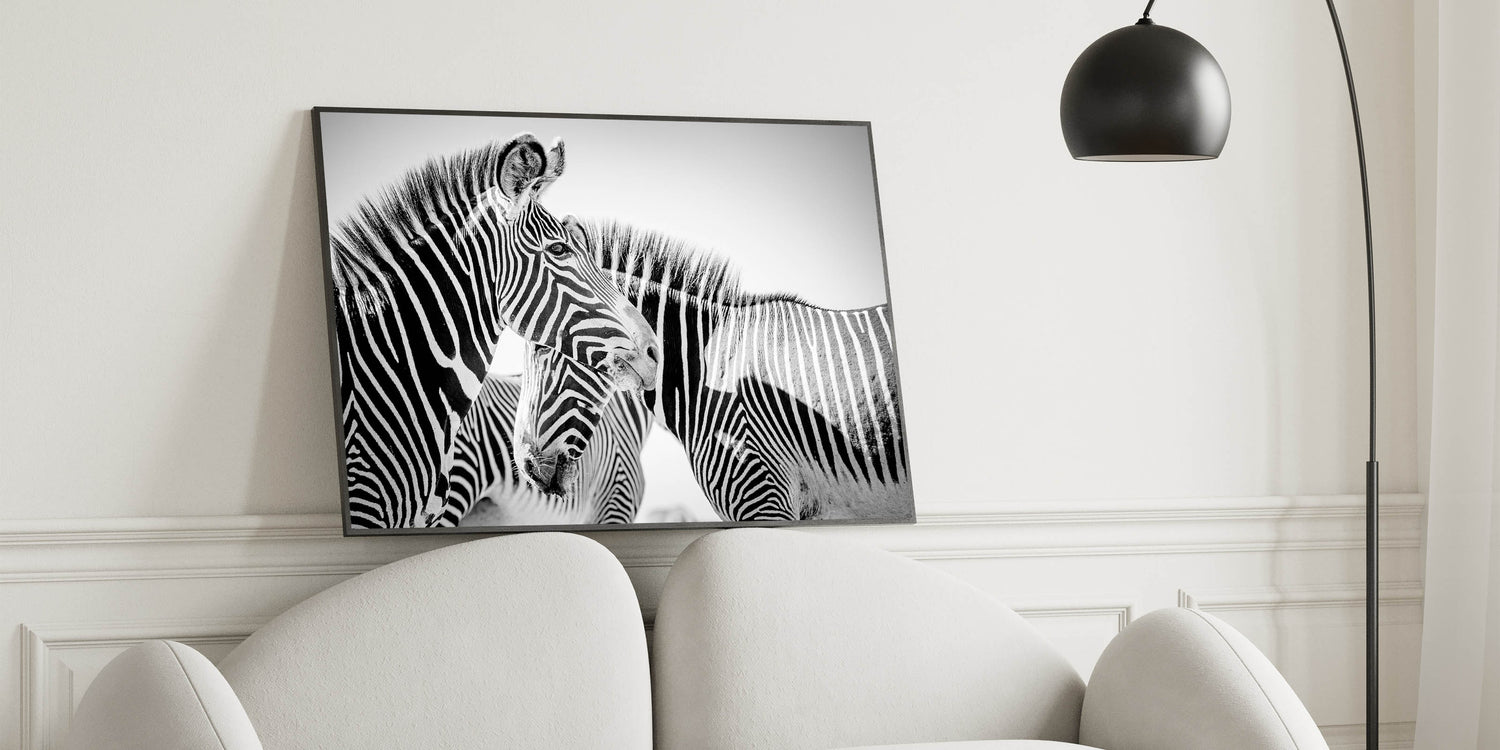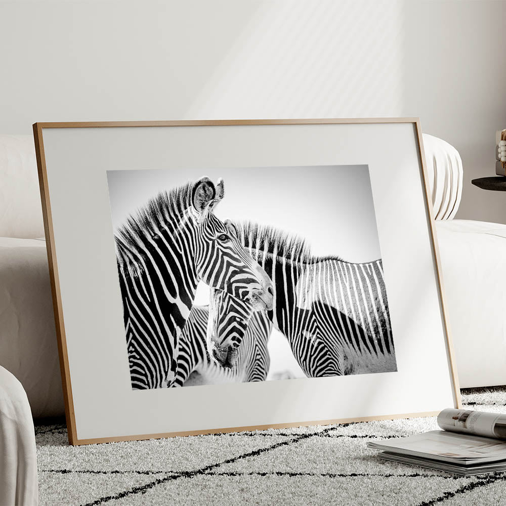 Embrace the timeless beauty of the wild with this Monochrome Zebra Duo wall art. The striking black and white photography captures the intimate interaction between two zebras, emphasizing their iconic stripes and the bond they share. This piece is perfect for those who appreciate the elegance and simplicity of monochrome art, making it an ideal addition to modern, minimalist, or nature-inspired interiors. Available in multiple formats including Stretched Canvas, Framed Canvas, Acrylic Glass, Framed Acrylic Glass, Framed Print, Rolled Canvas, and Rolled Print, this artwork combines style and sophistication.