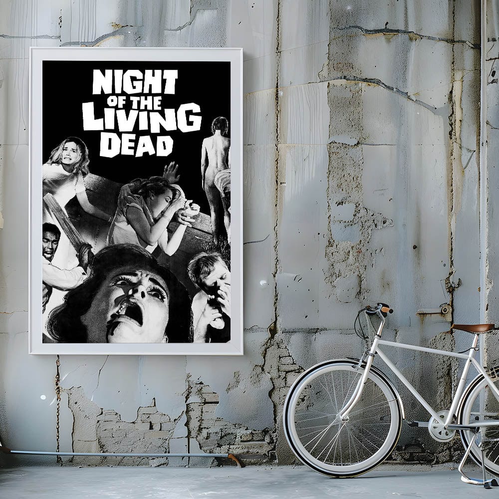 Add a chilling touch to your collection with this vintage Night of the Living Dead movie poster, a legendary 1960s horror film print that defined the zombie genre. This black and white retro cinema art captures the eerie atmosphere of one of the most influential horror films in history. Featuring intense visuals and dramatic expressions, this classic 60s movie print is a must-have for horror fans and collectors of vintage film art.