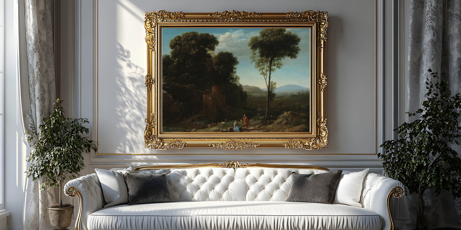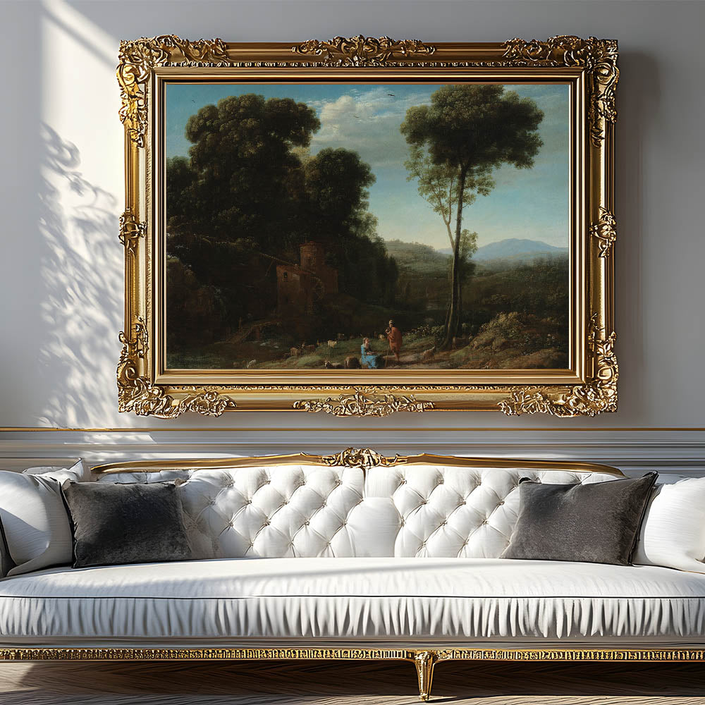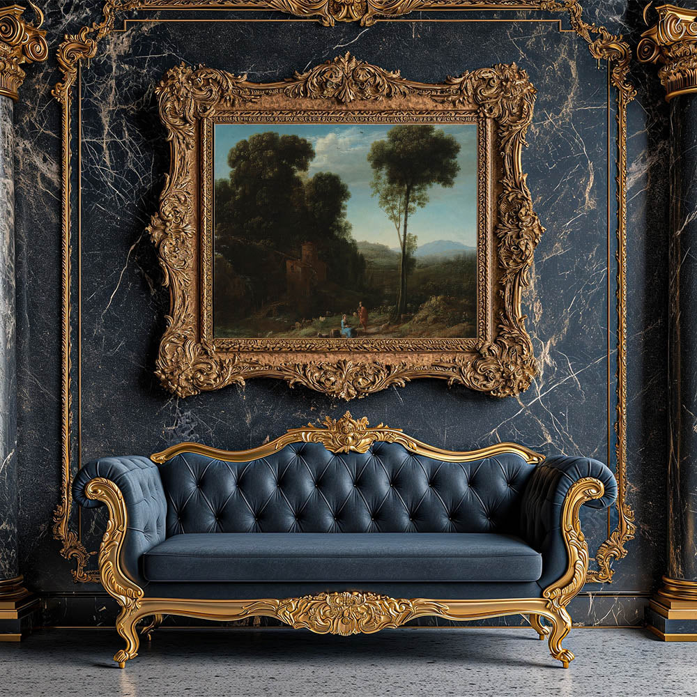 The use of warm, natural tones and intricate detailing embodies the elegance of the Baroque period. This landscape adds a touch of history and artistic sophistication to any room, making it ideal for living rooms, studies, or any space that could benefit from a calming, classic touch.