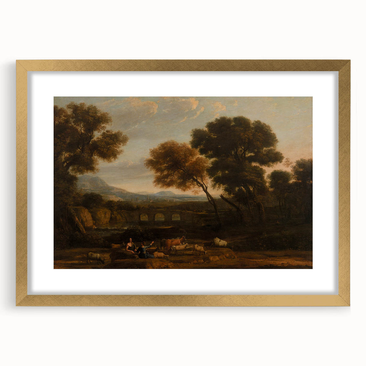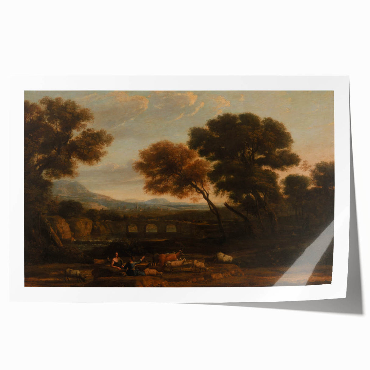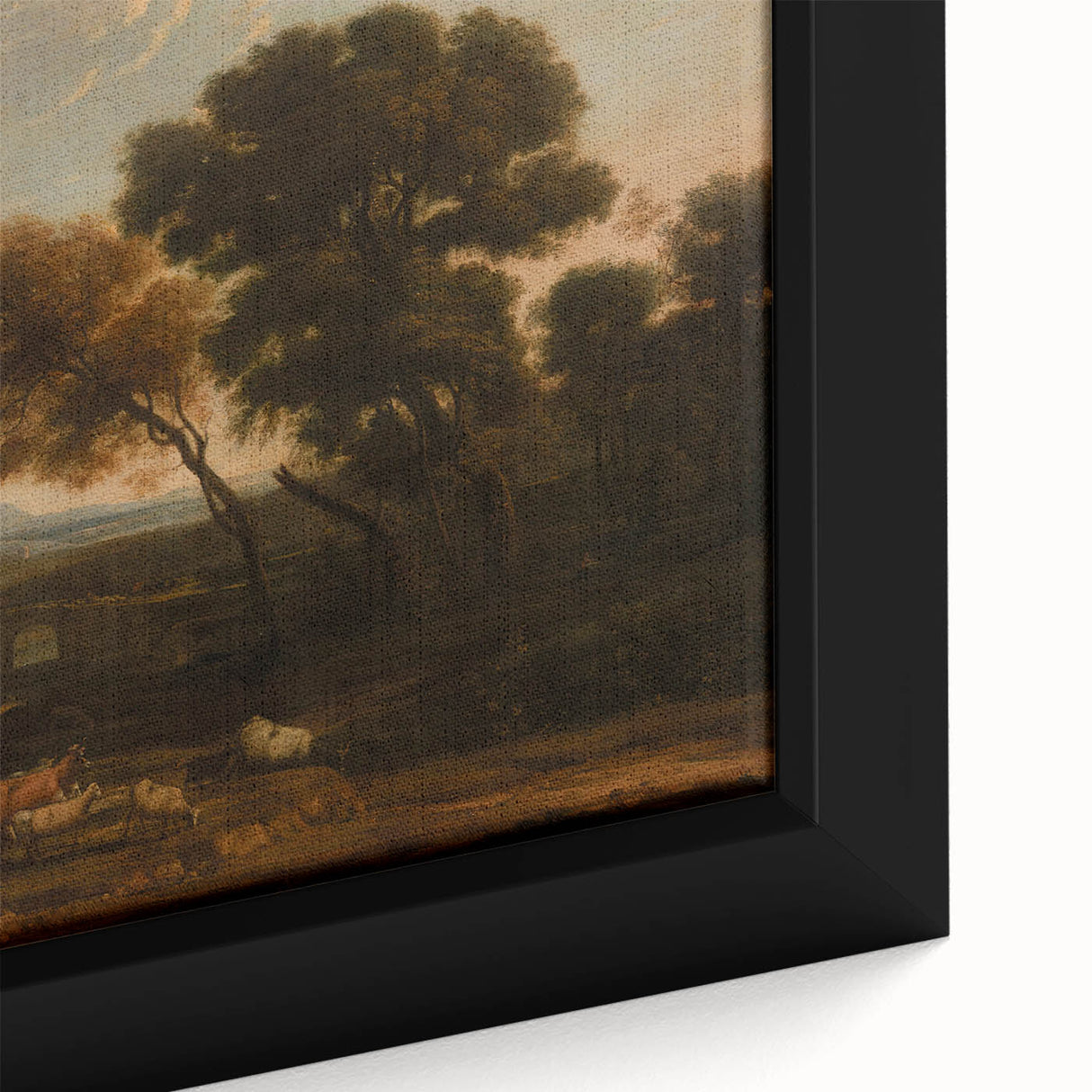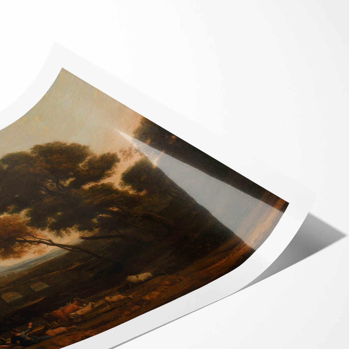 Transform your space with this stunning Baroque pastoral landscape art print. Featuring a tranquil countryside scene, this artwork showcases shepherds and their grazing flock amidst a serene landscape of lush trees, flowing rivers, and distant hills. The rich colors and intricate details evoke the peaceful beauty of rural life, capturing the timeless elegance of the Baroque period.
