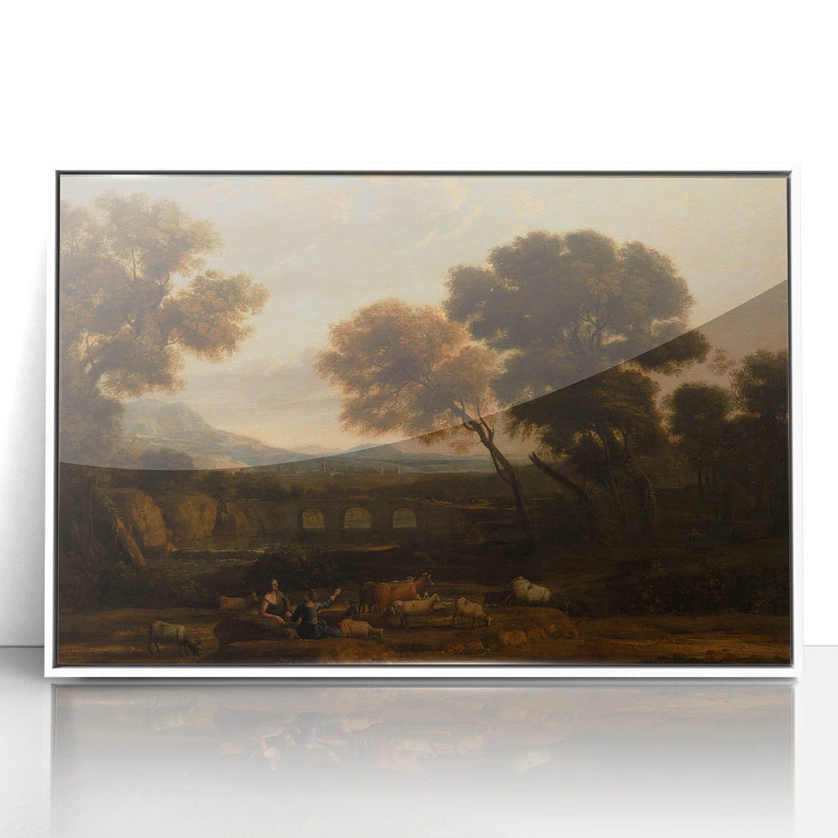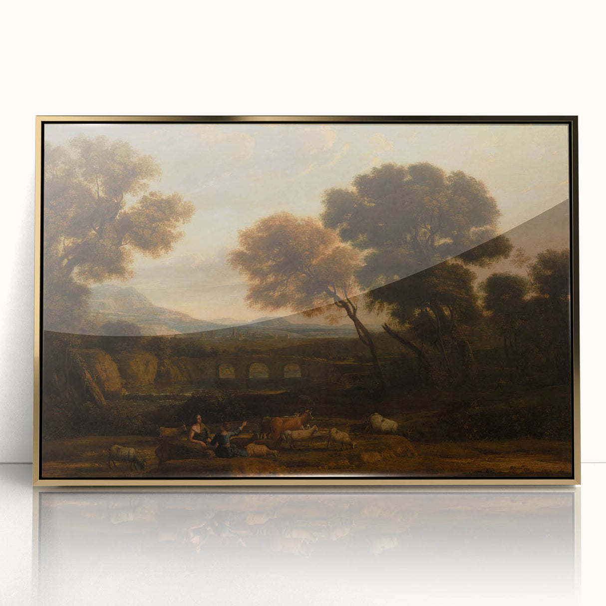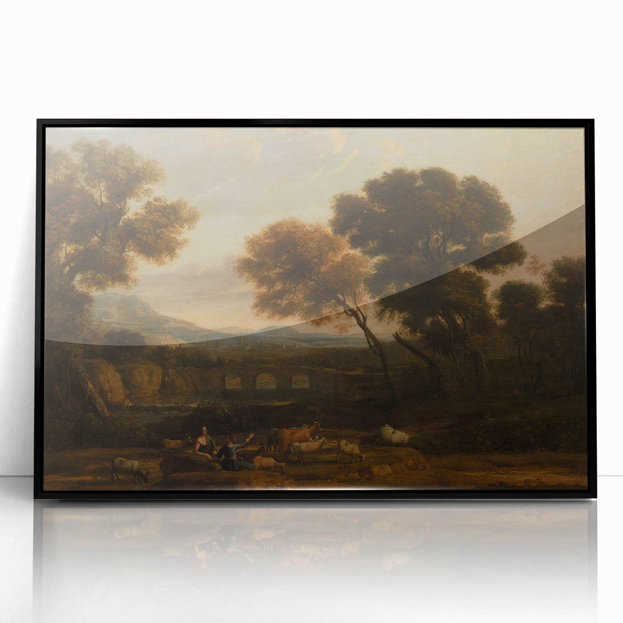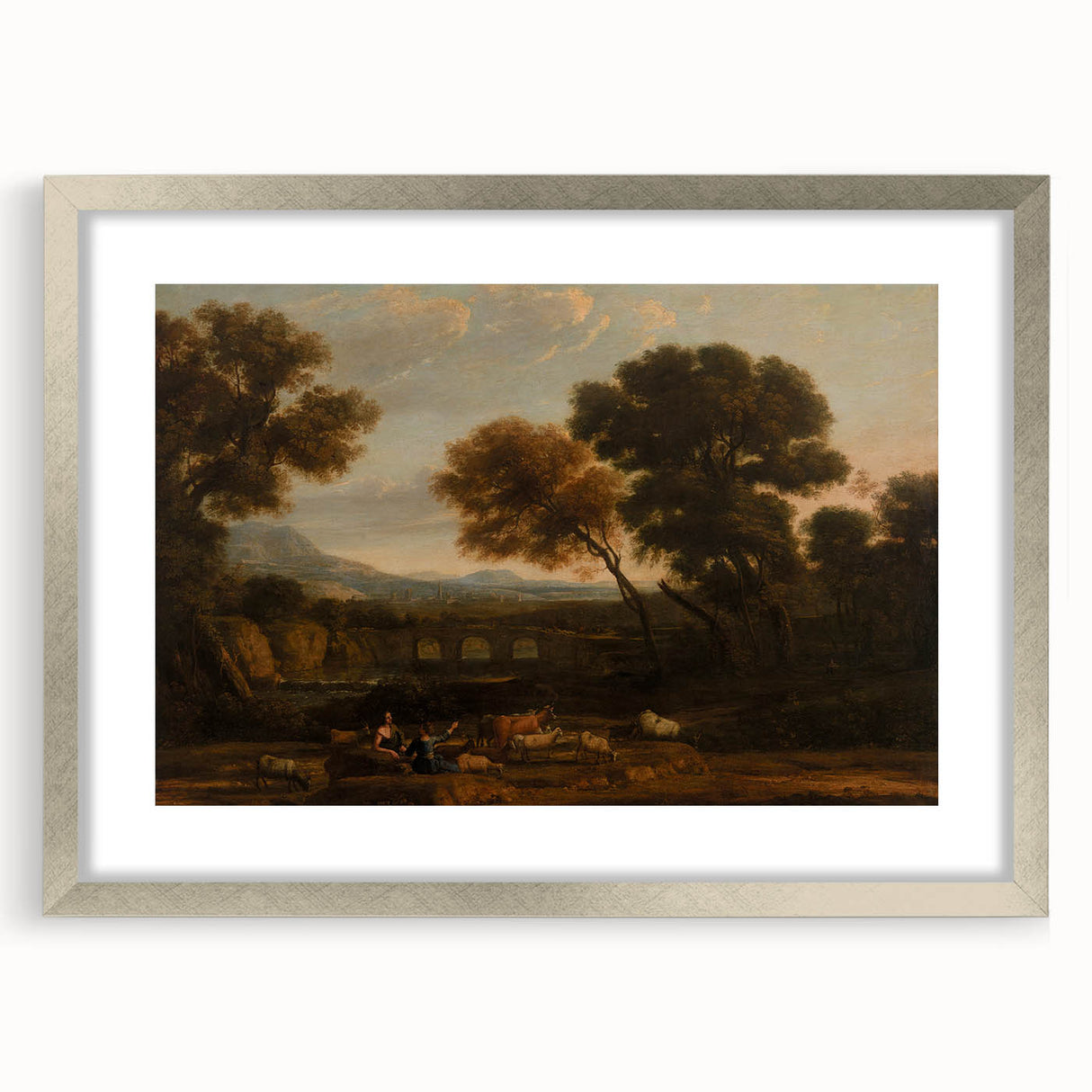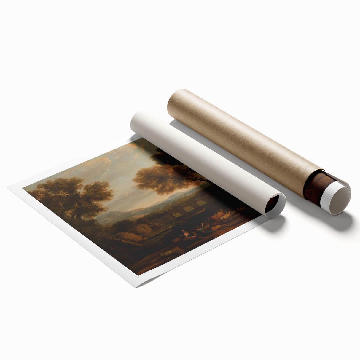 Transform your space with this stunning Baroque pastoral landscape art print. Featuring a tranquil countryside scene, this artwork showcases shepherds and their grazing flock amidst a serene landscape of lush trees, flowing rivers, and distant hills. The rich colors and intricate details evoke the peaceful beauty of rural life, capturing the timeless elegance of the Baroque period.
