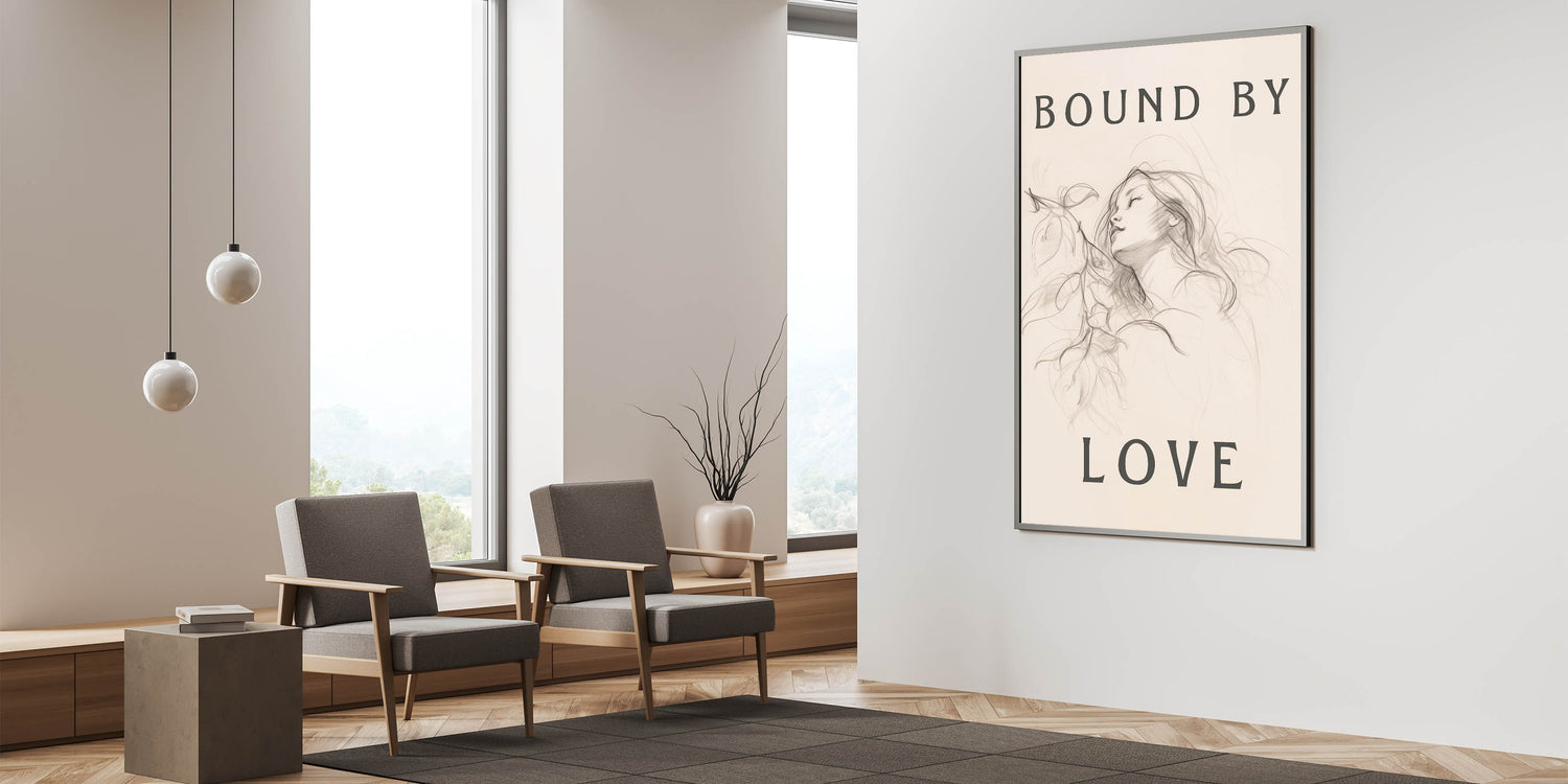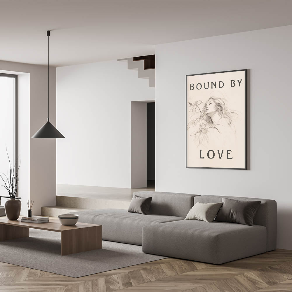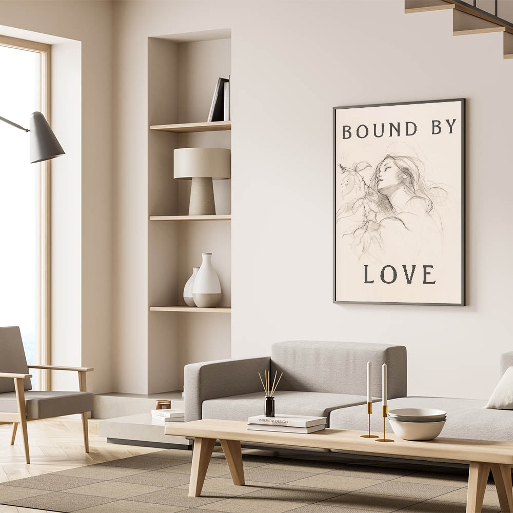 Introduce a sense of serene elegance to your space with this captivating minimalist abstract art piece, "Bound by Love." This artwork features delicate linework that beautifully captures the emotion and grace of a woman intertwined with nature. The simplicity of the design makes it a perfect addition to modern interiors, creating a calming atmosphere while still making a statement.