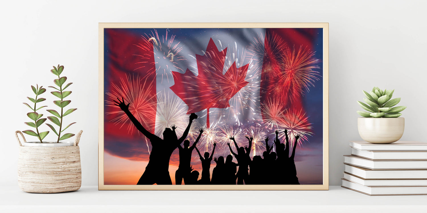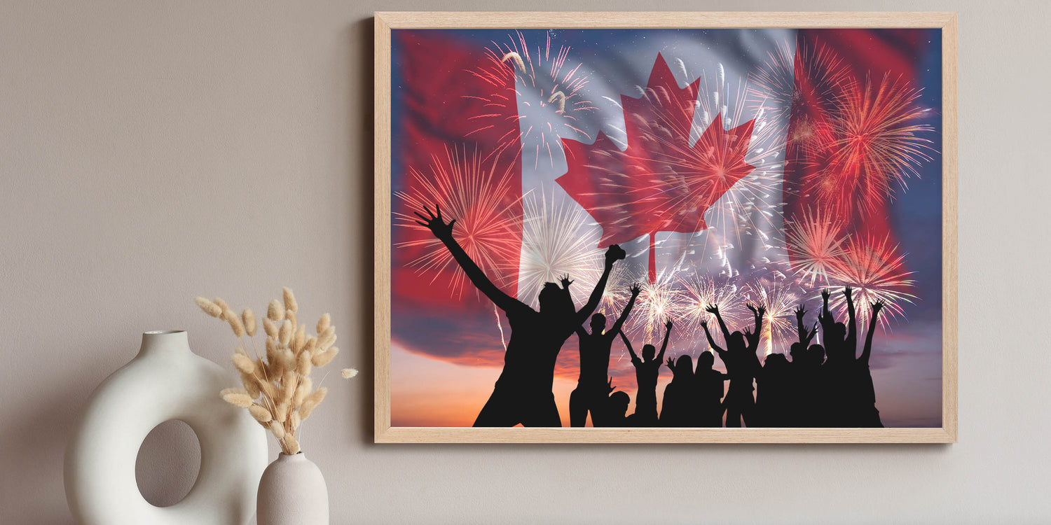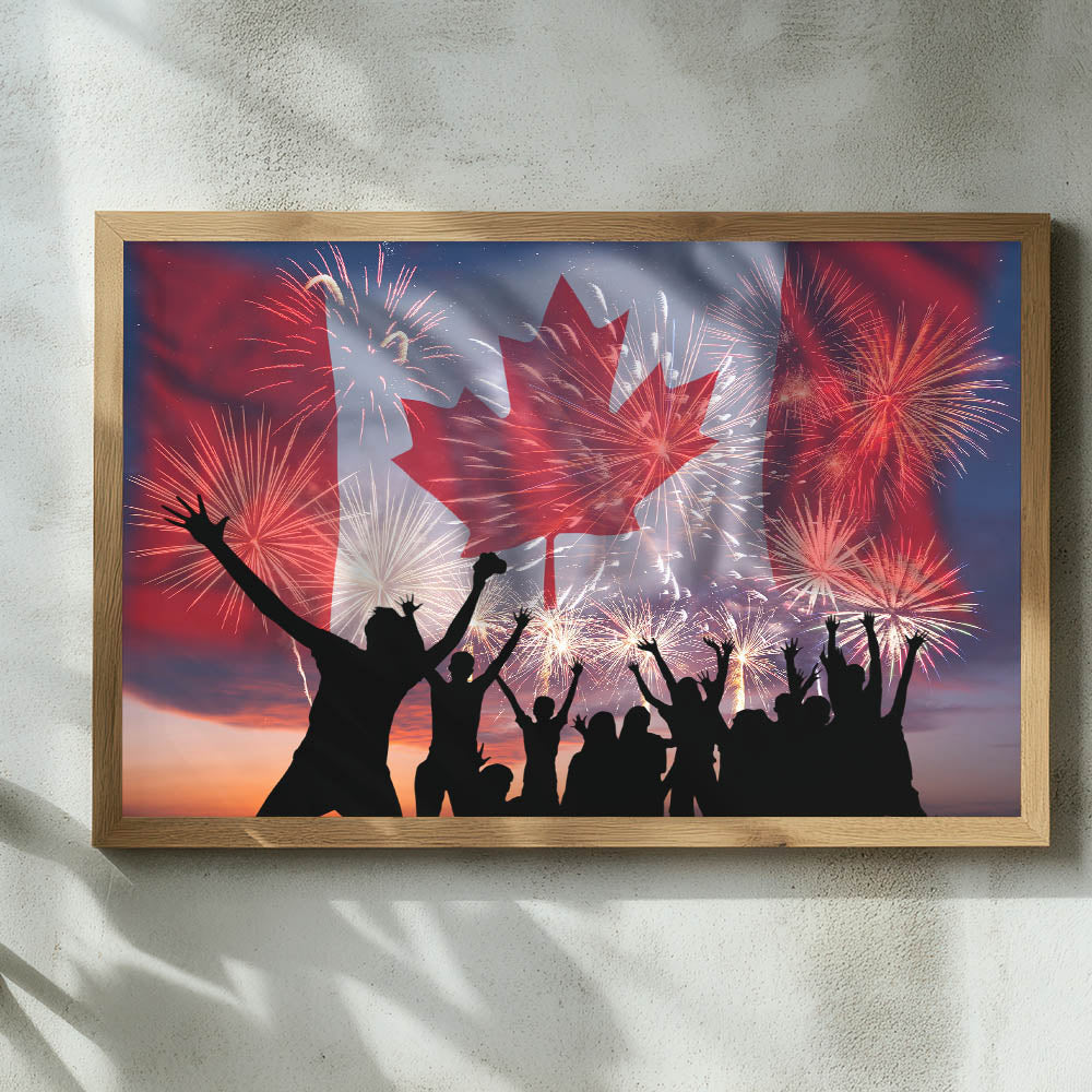 Bring excitement and national pride into your space with these captivating Canada Day Art Prints. Beautifully featuring the vibrant Canadian flag, iconic maple leaf art prints, and celebratory fireworks illuminating a joyous crowd, this artwork perfectly captures the festive spirit of Canada Day celebrations. Infuse your surroundings with patriotic energy and create unforgettable moments with this striking piece of Canadian Heritage Wall Art.