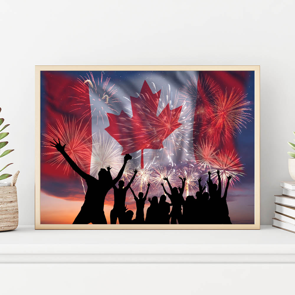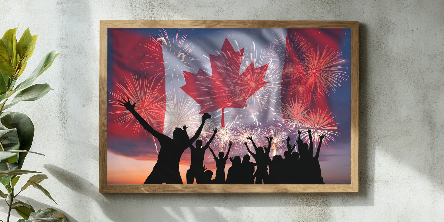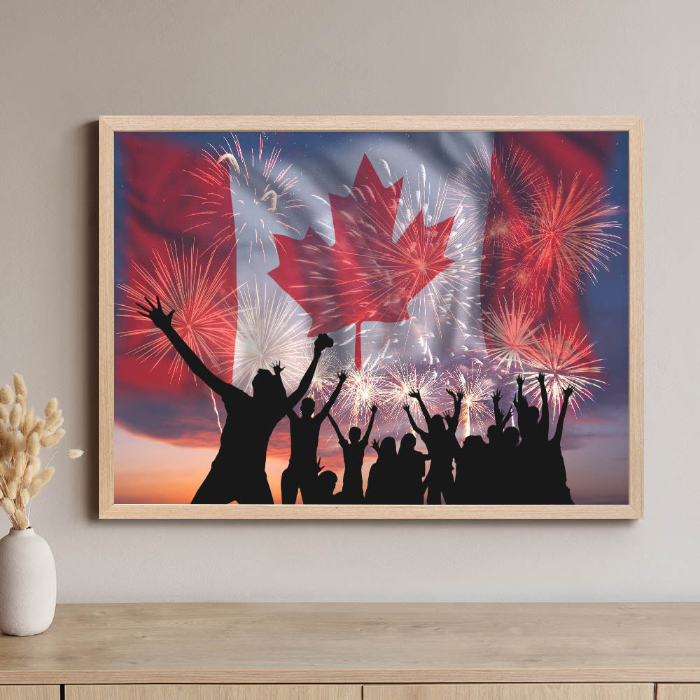 Bring excitement and national pride into your space with these captivating Canada Day Art Prints. Beautifully featuring the vibrant Canadian flag, iconic maple leaf art prints, and celebratory fireworks illuminating a joyous crowd, this artwork perfectly captures the festive spirit of Canada Day celebrations. Infuse your surroundings with patriotic energy and create unforgettable moments with this striking piece of Canadian Heritage Wall Art.