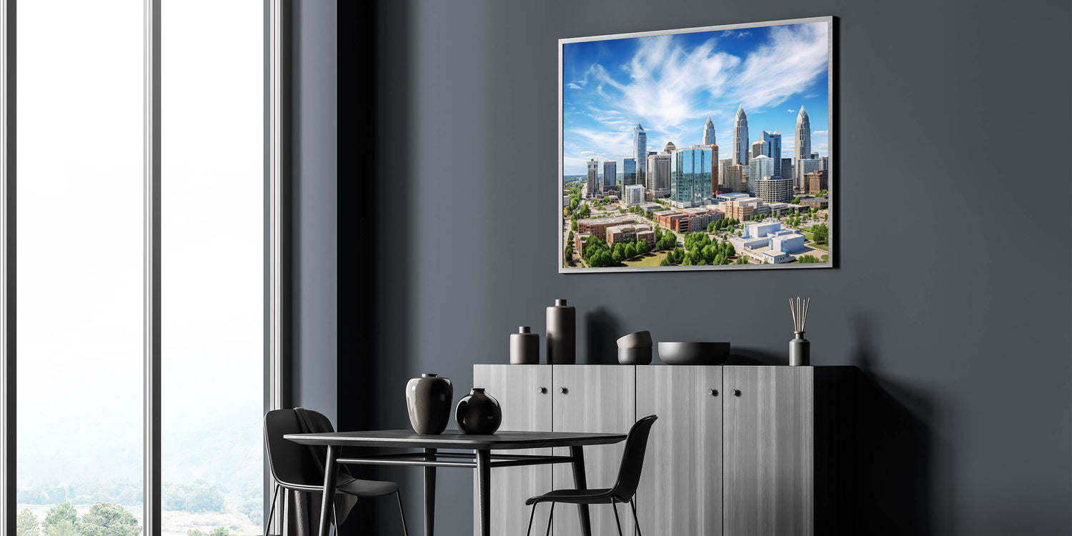 - Vibrant and Clear: High-resolution print showcases the detailed architecture of Charlotte with bright, lively colors.
