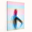 Soft gradients of pink, blue, and lavender wash over the silhouette of a poised figure in this dreamlike artwork. The blurred form floats between color and light, creating an ethereal fusion of emotive photography and minimalist figure art.