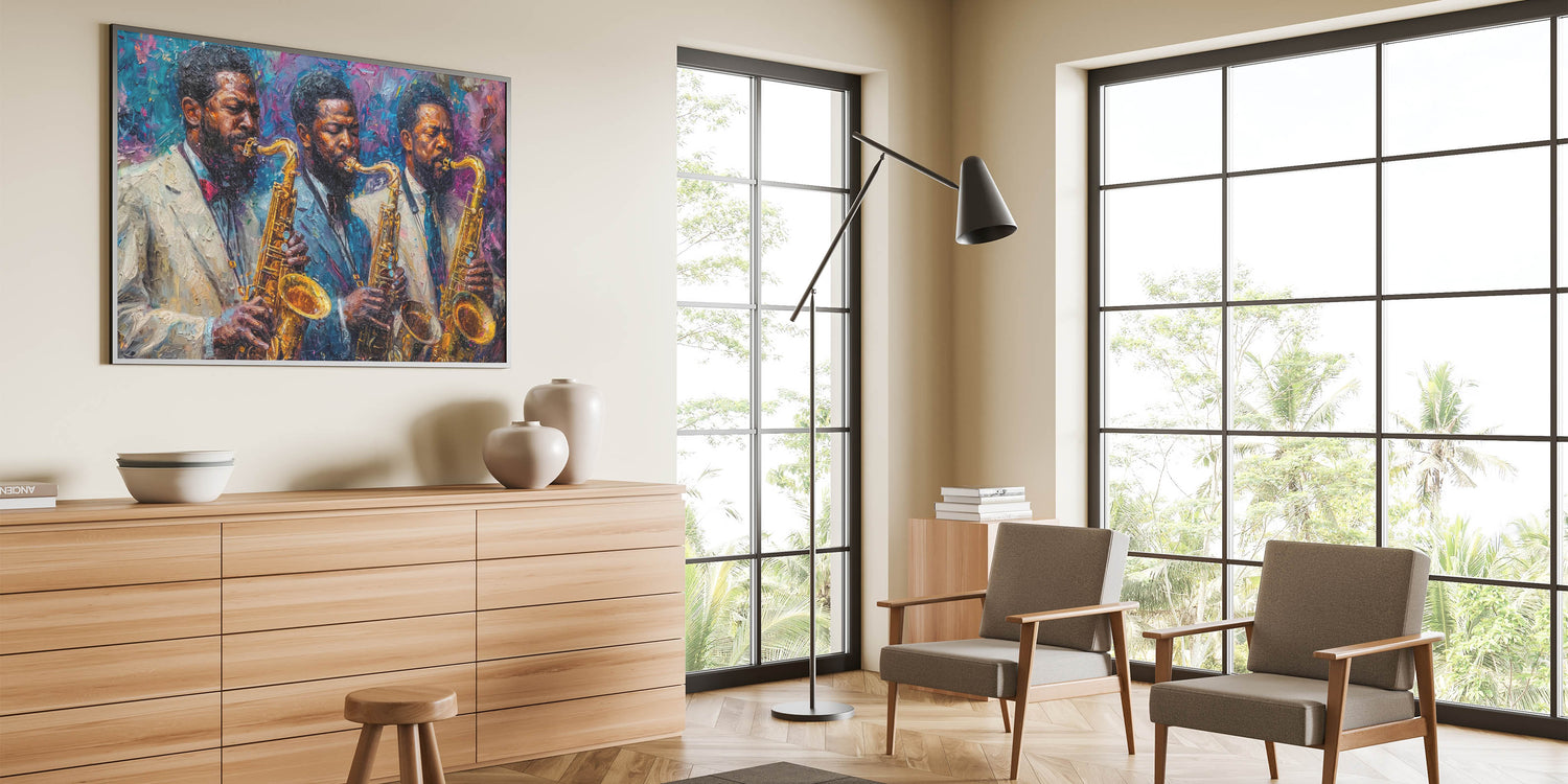 Dynamic Figurative Abstract Wall Art - Jazz Saxophonists in Harmony