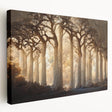Create a stunning focal point in your dining space with this elegant dining room wall art, featuring a breathtaking mystical forest. The intricate details of towering trees resembling cathedral columns add depth and grandeur, making this canvas art for dining area a perfect blend of nature and artistry. The warm tones of gold, beige, and brown create a luxurious yet serene ambiance, making it a perfect addition to dining room wall decor.