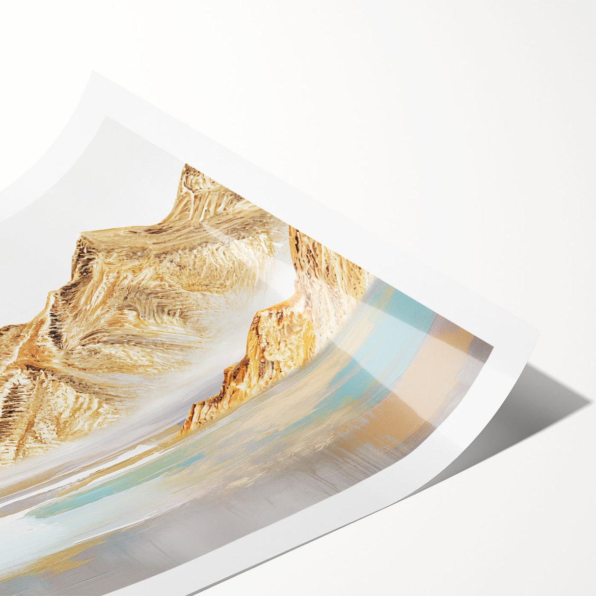 Add a touch of elegance and sophistication to your home or office with this captivating mountain landscape. The blend of gold and soft tones creates a calming atmosphere, making it a perfect addition to any decor style.