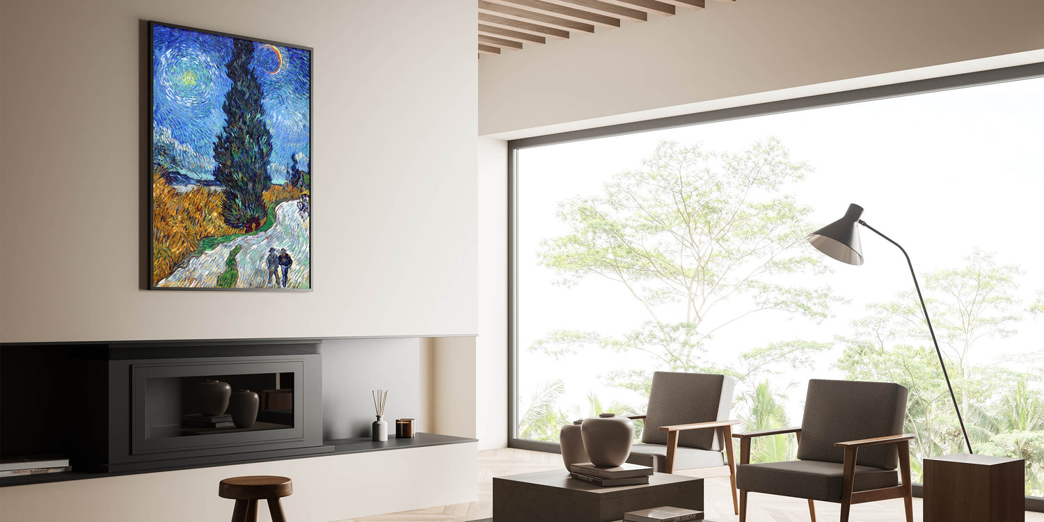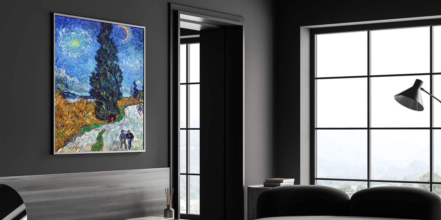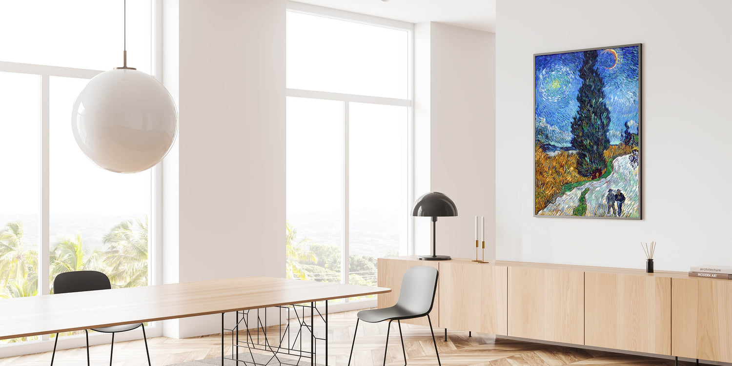 This Impressionist landscape transports viewers to a serene yet vibrant setting, where nature meets the cosmos. Ideal for art collectors and enthusiasts, "Road with Cypress and Star" brings an artistic sense of wonder and serenity to any home or office.