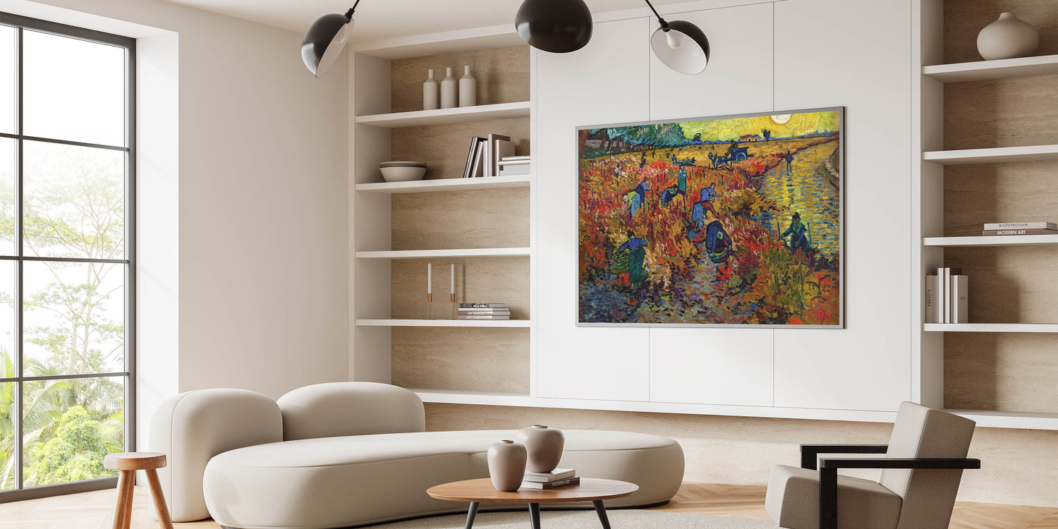 Celebrate the beauty of harvest time with Vincent van Gogh's "The Red Vineyard" (1888), a radiant depiction of workers in a glowing autumnal landscape. This Impressionist masterpiece is the only painting Van Gogh sold during his lifetime, showcasing his unparalleled ability to capture light, movement, and emotion. The bold reds, golden yellows, and deep blues bring the scene to life, making it a perfect focal point for any space.