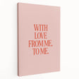 Celebrate self-love and positivity with this Maximalist Wall Art, featuring the heartfelt quote: "With love from me, to me." The bold red typography against a soft pink background creates a striking yet tender composition that adds warmth and charm to any space. Ideal for those who appreciate unique and empowering decor, this piece is perfect for living rooms, bedrooms, or personal sanctuaries, where it can inspire daily affirmations and self-care.