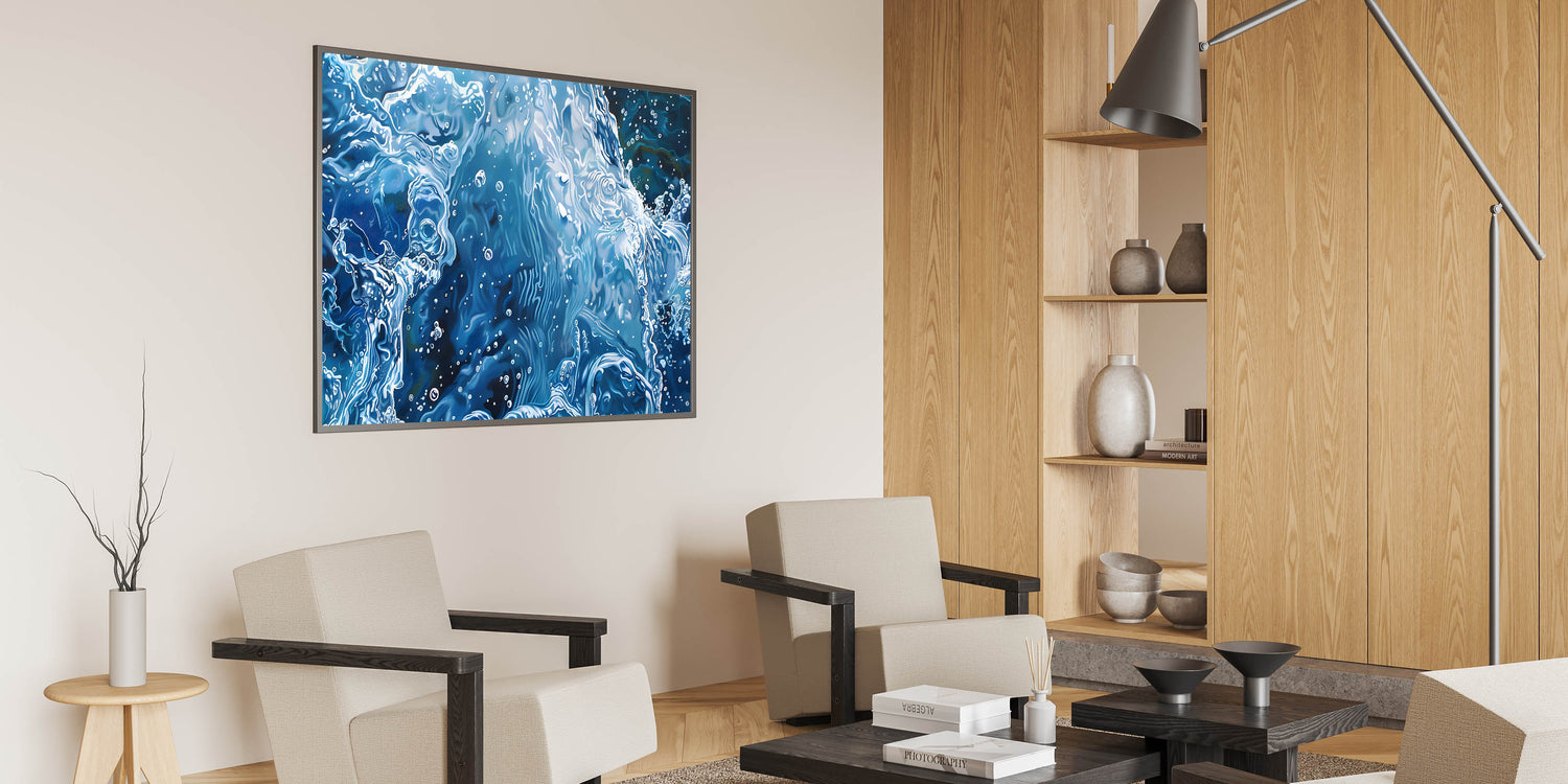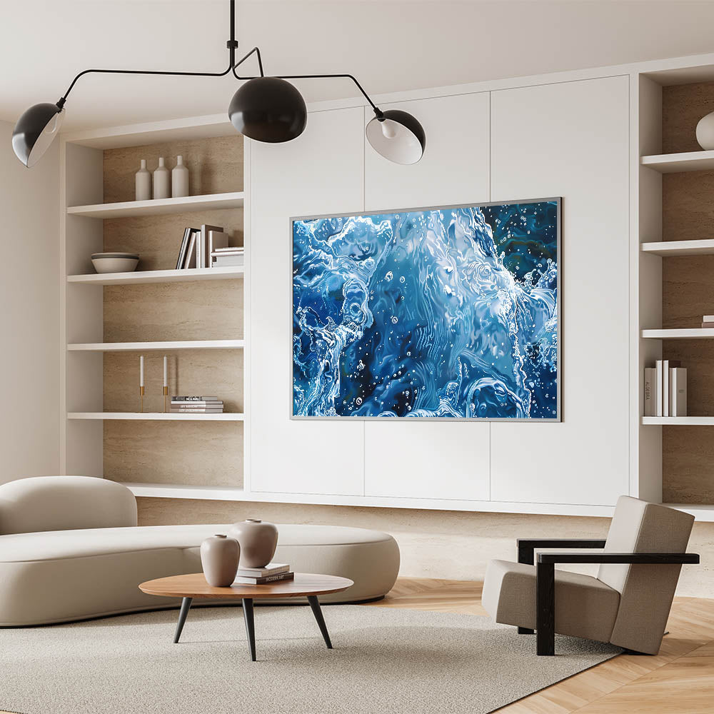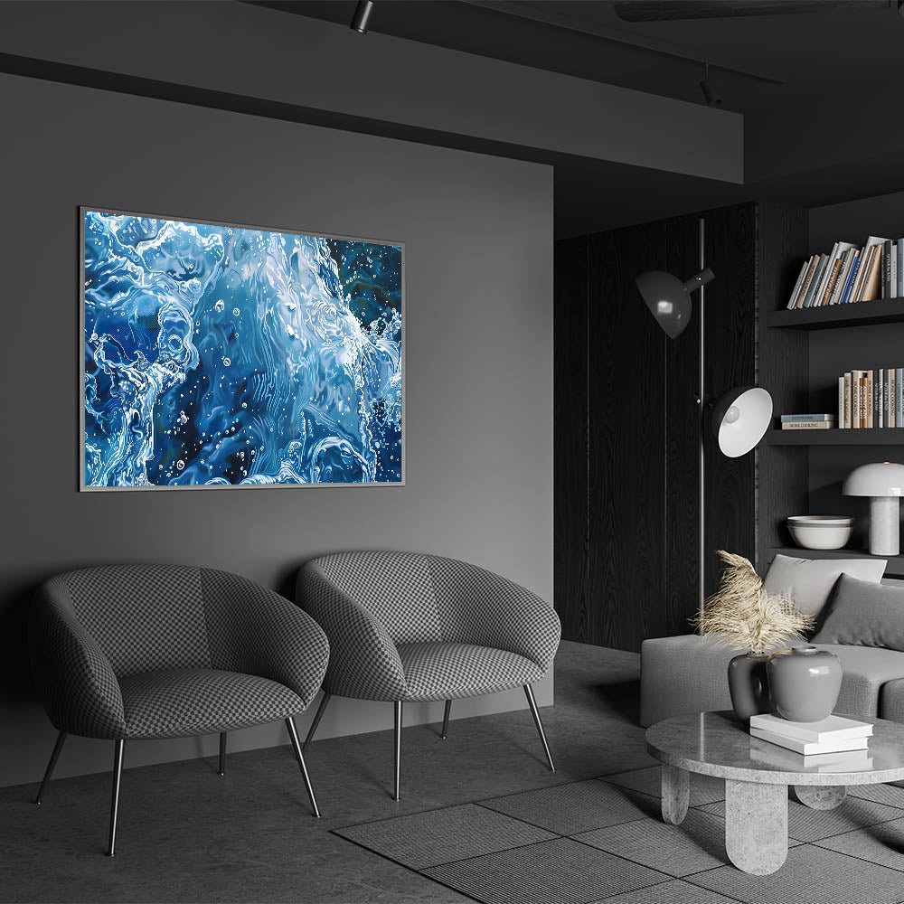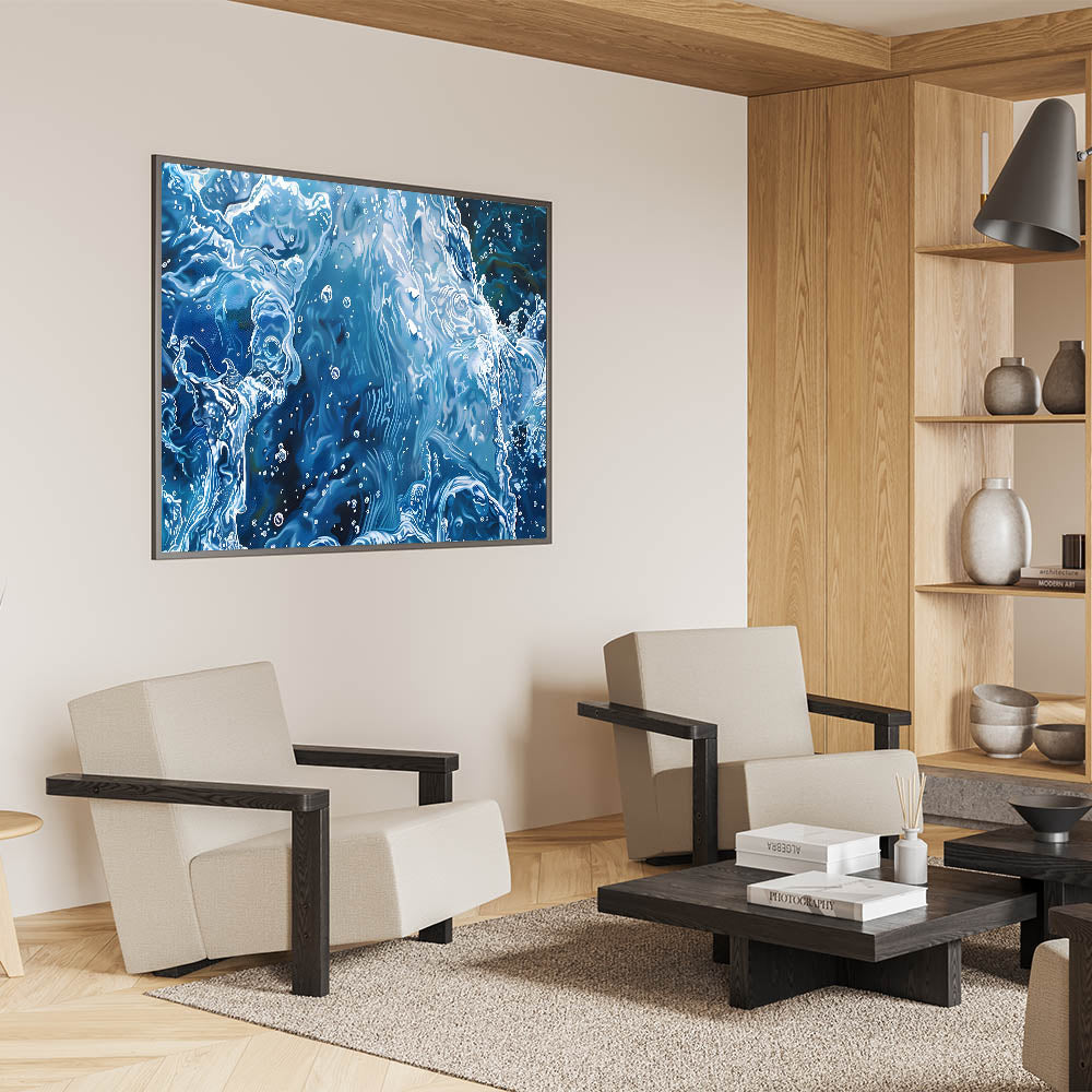 Whether you're looking for a serene focal point or a calming backdrop, this water-inspired art print will transform your space. The intricate details and vibrant blues evoke a sense of peace and natural beauty. Add this unique water canvas to your decor today and immerse yourself in the elegance of nature’s finest details.