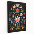 Introduce a touch of Scandinavian beauty to your home with this stunning minimalist floral art print. Featuring a vibrant blend of Nordic-inspired colors, this piece showcases a playful arrangement of stylized flowers in red, yellow, blue, and orange against a striking black background. Perfect for lovers of modern Scandinavian design, this artwork brings warmth and joy to any space, whether it's your living room, bedroom, or office.