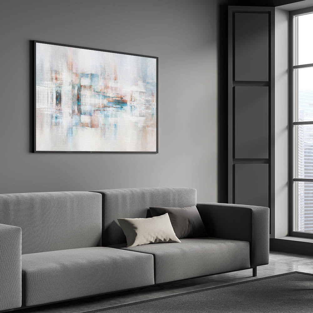 Transform your space with the soothing elegance of this subtle abstract strokes art. Featuring a delicate blend of soft blues, rust tones, and crisp whites, this artwork creates a serene and tranquil atmosphere. The muted color palette and gentle brushstrokes make it an ideal choice for enhancing the calm and peaceful vibe in any room, whether it's a living space, bedroom, or office.