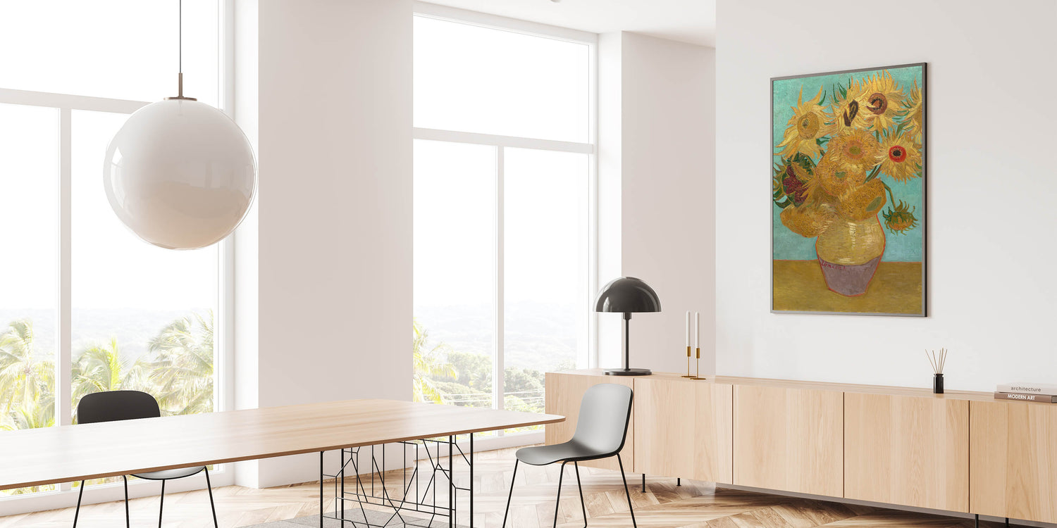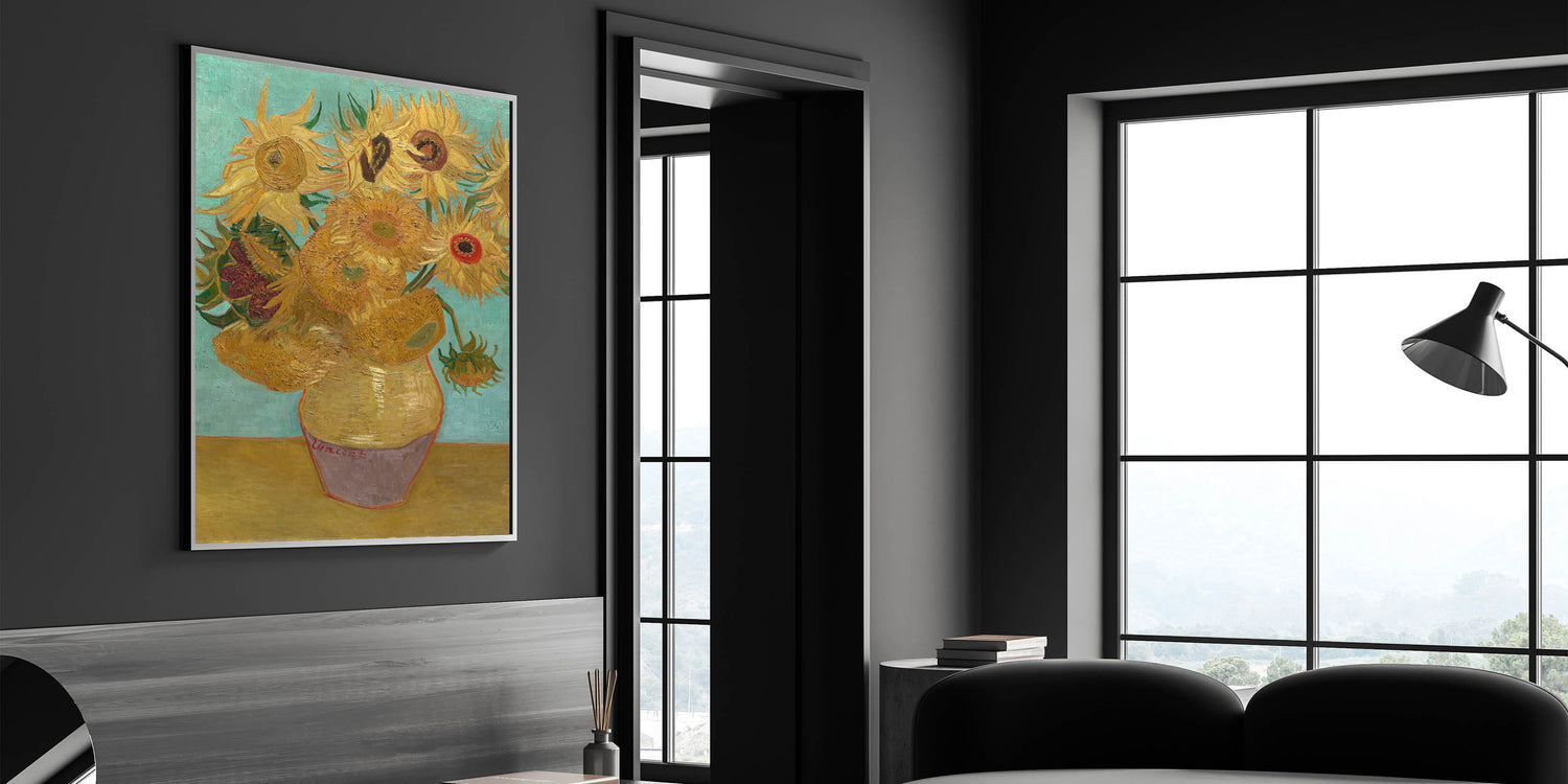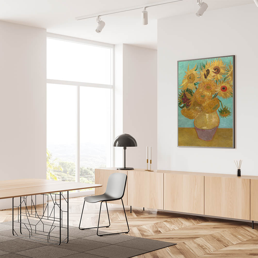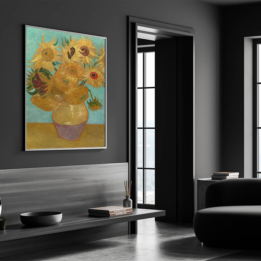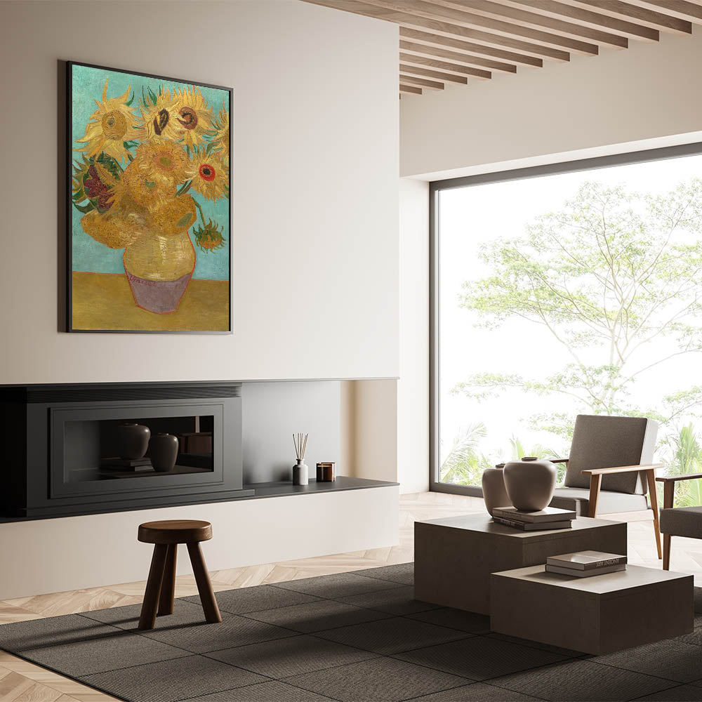 Illuminate your home with the vibrant energy of Vincent van Gogh’s Vase with Twelve Sunflowers. This iconic painting celebrates the beauty of nature, featuring golden sunflowers in various stages of bloom. The lively composition is set against a soft turquoise background, with bold brushstrokes and warm yellows that convey a sense of joy and vitality. Van Gogh’s masterful technique brings each sunflower to life, making this piece a timeless emblem of the Impressionist movement.